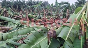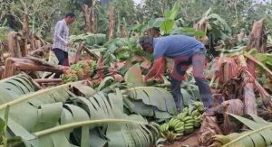 શિનોર તાલુકાના મોટા ફોફડિયા ગામે ભારે પવન સાથે વરસેલા વરસાદને પગલે તૈયાર થએલ કેળાનાં પાકને ભારે નુકશાન