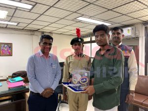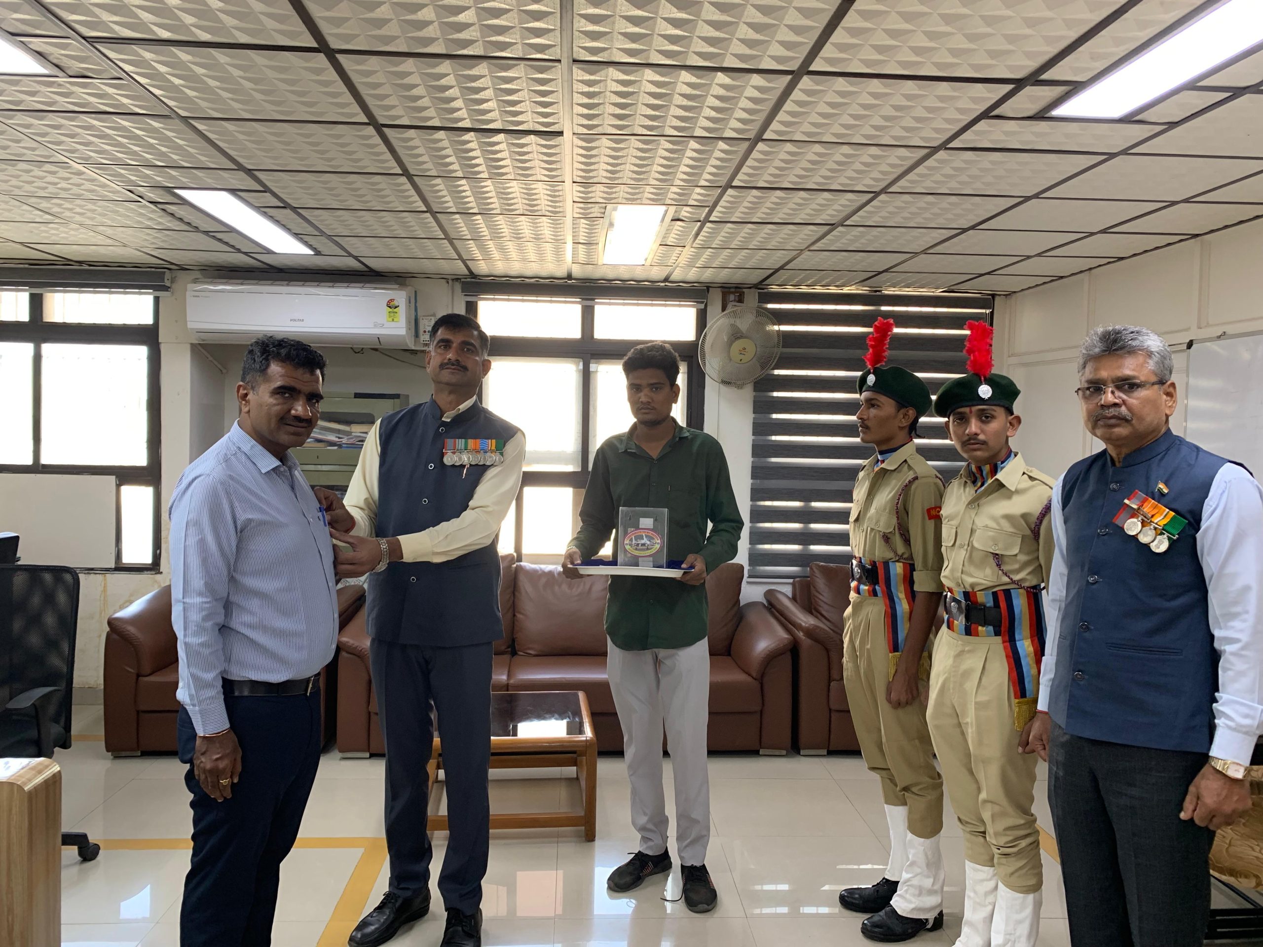 આ પ્રસંગે નિવાસી અધિક કલેક્ટરશ્રી જે.કે. જેગોડાએ સશસ્ત્ર સેના ધ્વજદિન ભંડોળમાં ફાળો આપવા જિલ્લાવાસીઓને અપીલ કરી હતી. આ તકે જિલ્લા મદદનીશ સૈનિક કલ્યાણ અધિકારીશ્રી પલ્કેશકુમાર એચ.ચૌધરી દ્વારા અધિક નિવાસી કલેકટર જે.કે.જેગોડાનું સન્માન કરવામાં આવ્યું હતું.
