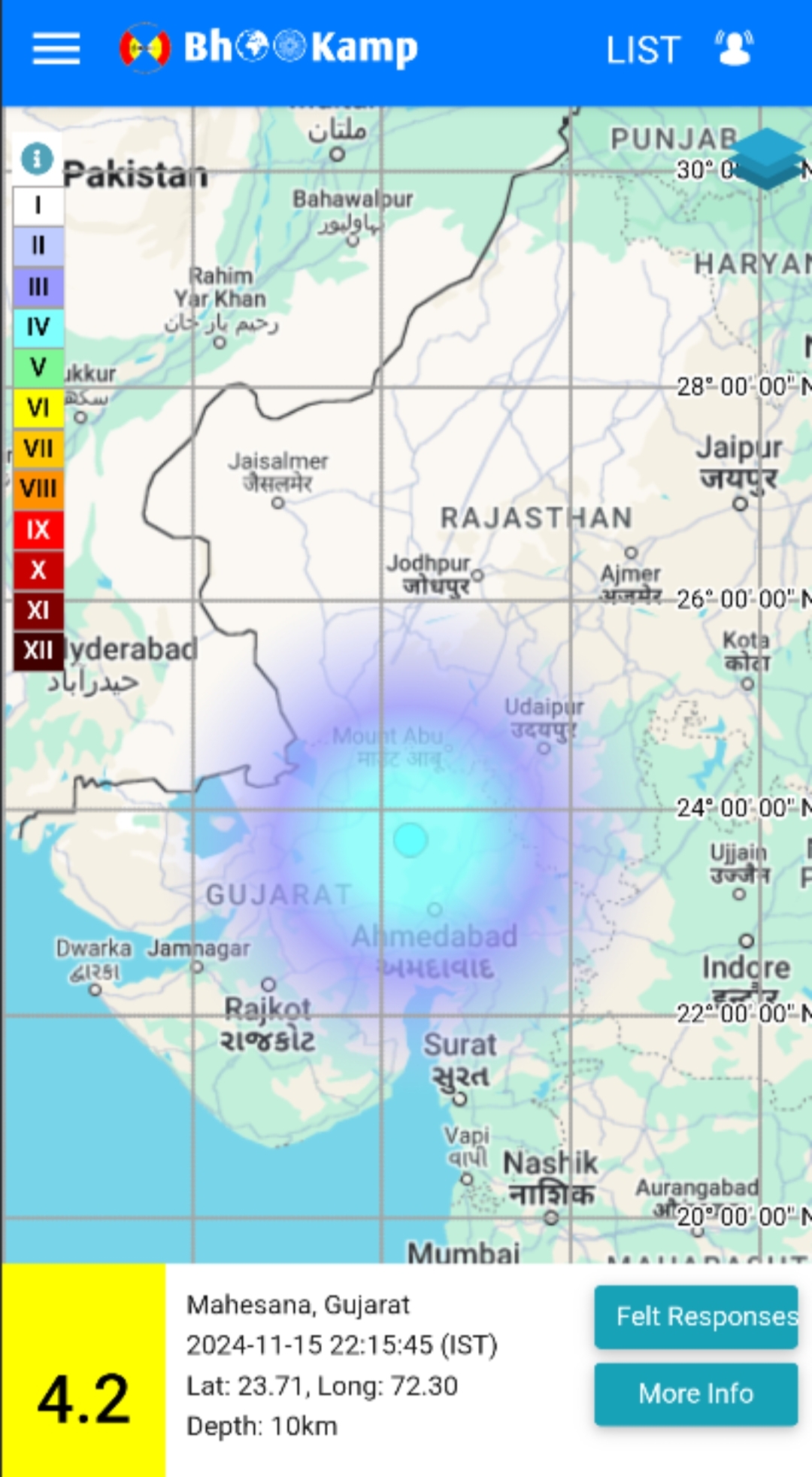 જે નેશનલ સેન્ટર ફોર સિસ્મોલોજી (એનસીએસ)એ નોંધ્યું છે. આ ભૂકંપના આંચકા સમગ્ર ઉત્તર ગુજરાત અને સૌરાષ્ટ્રના કેટલાક ભાગ અને માઉન્ટ આબુ સુધી અનુભવાયા હતા. જેમાં મહેસાણા, બનાસકાંઠા, સાબરકાંઠા, ડીસા, ખેરાલુ, વડનગર, વિસનગર, પાલનપુર, પ્રાંતિજ, તલોદ, ઈડર, વડાલી, બહુચરાજી, સતલાસણા, હારીજ, સમી સહિતના વિસ્તારોમાં ભૂકંપનો આચંકો અનુભવાયો હતો. મોરબીના હળવદના કોઈબા, ઢવાણા, માલણીયાદ અને આસપાસના વિસ્તારમાં પણ ભૂકંપ આવ્યો હતો….