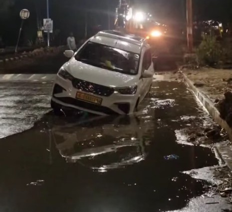 મોડાસા : ભર ઉનાળે ચોમાસા જેવો માહોલ: મોડાસા સહયોગ ચોકડી પાસે રસ્તા પર પાણીમાં કાર ફસાતા, ક્રેન વડે કાર બહાર કઢાઈ