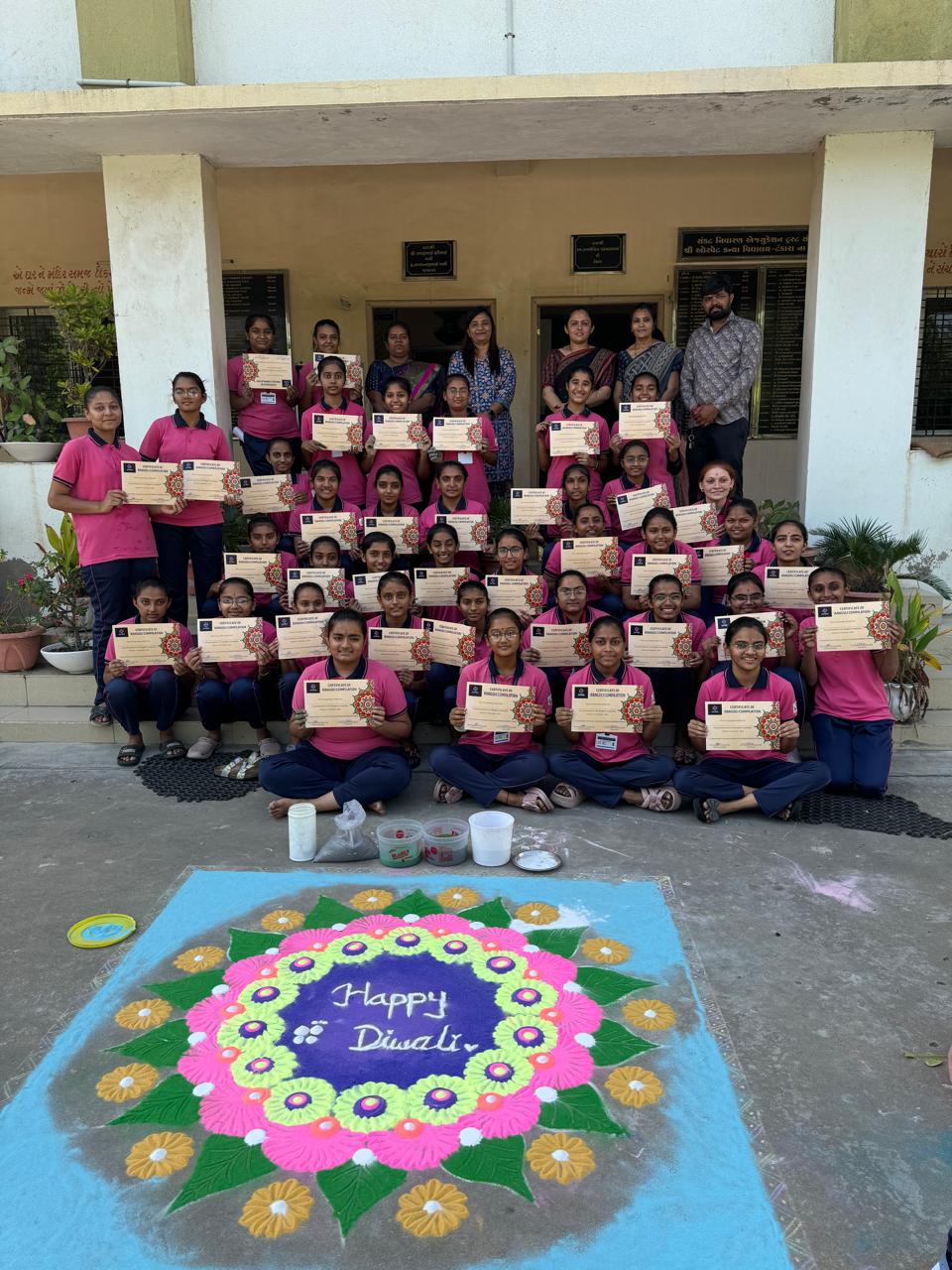 પાટીદાર વુમેન સેમ્પાયરમેન્ટ ગ્રુપ દ્વારા ઔર પેટ કન્યા વિદ્યાલય ખાતે તારીખ 14 અને 15 /10/ 2025 ના રોજ ધોરણ છ થી 12 ની વિદ્યાર્થીનીઓ માટે દિવાળી પર્વ નિમિત્તે રંગોળી સ્પર્ધાનું આયોજન કરવામાં આવેલ જેમાં શાળાની 180 દીકરીઓએ ભાગ લીધેલ આ બધી જ દીકરીઓને પ્રોત્સાહક પ્રમાણપત્ર આપવામાં આવ્યા તથા પ્રાથમિક માધ્યમિક અને ઉચ્ચતર માધ્યમિક વિભાગમાં પ્રથમ ત્રણ નંબર પ્રાપ્ત કરનાર વિદ્યાર્થીનીઓને પ્રોત્સાહક ઇનામો પણ પાટીદાર વોમેન એમપાવરમેન્ટ ગ્રુપ દ્વારા આપવામાં આવ્યા. આ સ્પર્ધા પાટીદાર વુમેન એમ્પાવરમેન્ટ ગ્રુપના સાધનાબેન ઘોડાસરા અને કાજલબેન દ્વારા યોજાયેલ અને ઓરપેટ કન્યા વિદ્યાલયના આચાર્યશ્રી અસ્મિતાબેન ગામી તથા શાળાના સ્ટાફ પરિવારના સહયોગથી રંગોળી સ્પર્ધા નું સુંદર આયોજન કરવામાં આવ્યું
