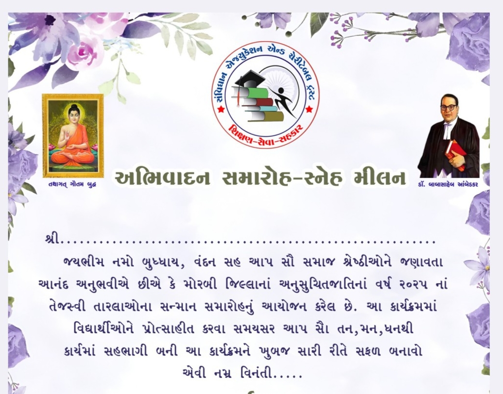 MORBI:મોરબીમાં આવતી કાલે સંવિધાન સેવા મંચ દ્વારા અનુસૂચિત જાતિના તેજસ્વી તારલાઓનો સન્માન સમારોહ યોજાશે