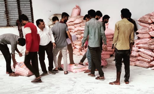કિ.રૂ.૧,૮૬,૫૫૦/- તથા ન્યુરો પોર્ટસ ખાતરની થેલી કુલ ૧૧૮ કિ.રૂ.૨,૦૬,000/- કૃભકો ખાતરની પ્લા.ની થેલી નંગ રપ0 કિ.રૂ. ૬૬૬૨૫/- એક ટ્રક રજી GJ-39-T-7104 કિ.રૂા. ર0,00,000/- સાથે કુલ કિ.રૂા. રપ,પર,૧૧૪ નો મુદામાલ પકડી ગોડાઉન સંચાલક અજય રાવલ વિરુધ્ધ કાયદેસરની કાર્યવાહી હાથ ધરવામાં આવી છે.આ કામગીરી કરનાર અધિ/કમમચારીઓ આર.ટી.વ્યાસ પોલીસ ઇન્સ્પેકટર હળવદ પો.સ્ટે, તર્થા પો.સબ.ઇન્સ. કે.એચ.અંબારીયા તર્થા એ.એસ.આઇ. અજીતસિંહ