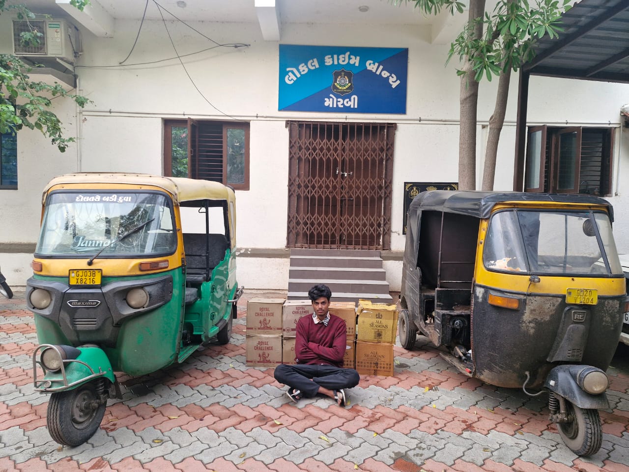 MORBI- મોરબી શહેરના કંડલા બાયપાસ રોડ પર નજીક રીક્ષામાંથી દારૂનો જથ્થો ઝડપાયો