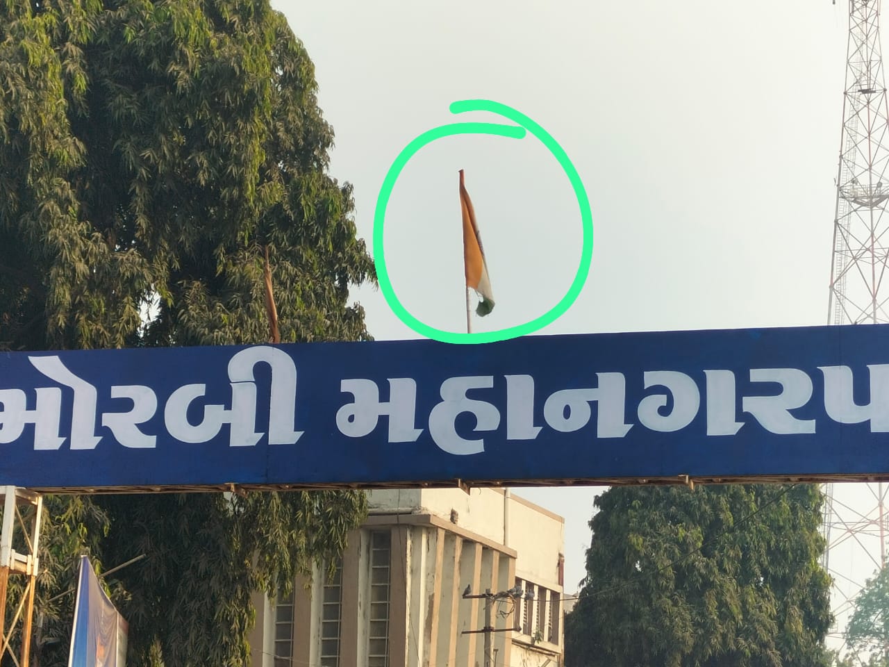 આપણા ભારત દેશની આન-બાન અને સાન એવા તિરંગા ને મોરબી મહાનગરપાલિકાના ગેટ ઉપર લગાડવામાં આવેલ છે. સવાલ એ ઉભો થાય છે કે અધિકારીઓ ને ફ્લેગ કોડ વિશે માહિતી છે કે નહીં ? ભારત સરકારના ફ્લેગ કોડ નિયમ મુજબ તિરંગો કોઈપણ રીતે ફાટેલો તૂટેલો કે કોઈપણ જગ્યાએ વીંટળાયેલો ના હોવો જોઈએ તેમજ કોઈપણ રીતે તેમાં ડાઘ પણ લાગેલો ન હોવો જોઈએ જ્યારે મોરબી મહાનગરપાલિકાના ગેટ ઉપર લગાડવા માં આવેલ તિરંગા ની હાલત જોતા ફ્લેગ કોડ ના તમામ નિયમોનું ખુલ્લેઆમ ઉલ્લંઘન થઈ રહ્યું છે દુઃખ તો એ વાતનું છે કે આઈએસ દરજ્જાના અધિકારી મોરબી નગરપાલિકાને મળ્યા તેમ છતાં દેશનું થતું અપમાન અટકાવી શક્યા નહીં. મહાનગરપાલિકાના કર્મચારીઓ દ્વારા અધિકારીની વહાવાહીમાં કઈ પણ કચાસ ન રહે તેનું સંપૂર્ણ ધ્યાન રાખ્યું છે પરંતુ દેશનું થતું અપમાન તેઓ માટે એક ફેશન થઈ ગઈ હોય તેવું લાગી રહ્યું છે આ પૂર્વે પણ મોરબી નગરપાલિકા વખતે પ્રતાંગણમાં તિરંગા નો ઉપયોગ ડોર ટુ ડોર વાહનોને પ્રસ્થાન કરાવવા ઝંડી રૂપે ઉપયોગ થયેલો છે. ખરેખર તમામ સરકારી કર્મચારીઓ અને અધિકારીઓને સૌપ્રથમ તો દેશનું માન અપમાન શીખડાવવું ખૂબ જરૂરી બની ગયું એવું લાગી રહ્યું છે કેમકે મોટાભાગના કર્મચારીઓ અને અધિકારીઓ વાહ વાહી જ કરવામાં નવરા નથી થતા. મોરબીના મહાનગરપાલિકા ના બોર્ડ ઉપર તેમજ સાઈડની લોખંડની રેલીંગમાં બાંધીને રાખવામાં આવેલ તિરંગો અધિકારીઓ અને કર્મચારીઓની અભણ તાની ચાડી ખાતો હોય તેવું લાગી રહ્યું છે હવે જોવાનું એ રહ્યું કે ખરેખર મહાનગરપાલિકા લોકોના પ્રશ્નો કેટલા અંશે હલ કરશે કે માત્ર ને માત્ર આગામી ચૂંટણી લગતું લોલીપોપ સાબિત થશે આ પૂર્વે પણ મોરબીને જિલ્લો બન્યા બાદ હજી ઘણી બધી જિલ્લા લેવલની સુવિધાઓ ઉભી નથી થઈ મોટાભાગની કચેરીઓ હજુ પણ ચાર્જ અધિકારીઓના ભરોસે ચાલી રહી છે.