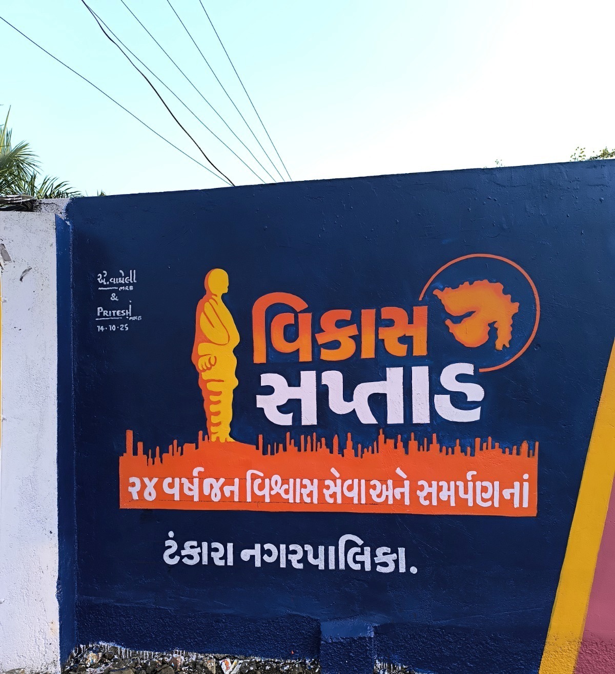 TANKARA:ટંકારામાં દિવાલો વિકાસ સપ્તાહના રંગે રંગાઈ; ટંકારા નગરપાલિકાનું આયોજન