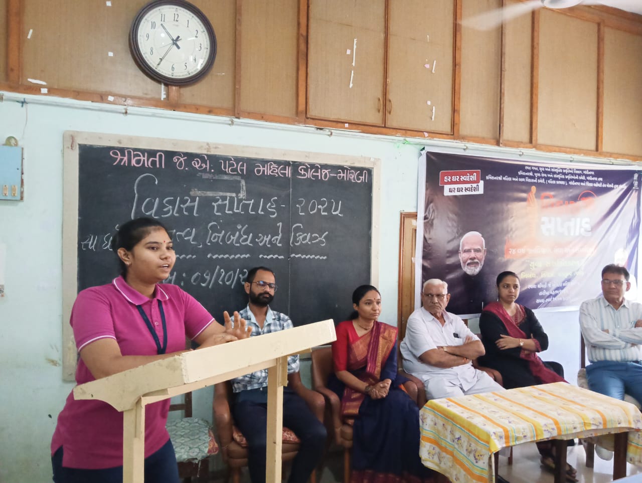 મહિલા અને બાળ વિકાસ વિભાગ તથા યુવા રમત ગમત અને સાંસ્કૃતિક પ્રવૃત્તિ વિભાગ દ્વારા મોરબીમાં શ્રીમતી જે.એ.પટેલ મહિલા કોલેજ ખાતે ‘વિકાસ સપ્તાહ’ –૨૦૨૫ યુવા સશક્તિકરણ કાર્યક્રમ યોજાયો હતો.