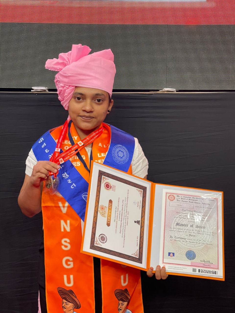 શ્રીમદ્ રાજચંદ્ર વિદ્યાપીઠની માઈક્રોબાયોલોજીની વિદ્યાર્થીની વિભૂતિબેન પટેલે યુનિવર્સીટીમાં પ્રથમ સ્થાન સાથે બે ગોલ્ડ મેડલ
