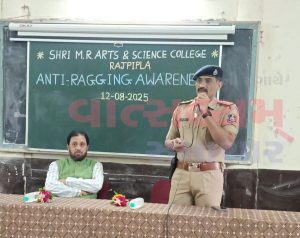 રાજપીપલાની એમ.આર. આર્ટ્સ એન્ડ સાયન્સ કોલેજમાં “એન્ટી રેગિંગ” અંગે જાગૃતિ વ્યાખ્યાનનું આયોજન કરાયું