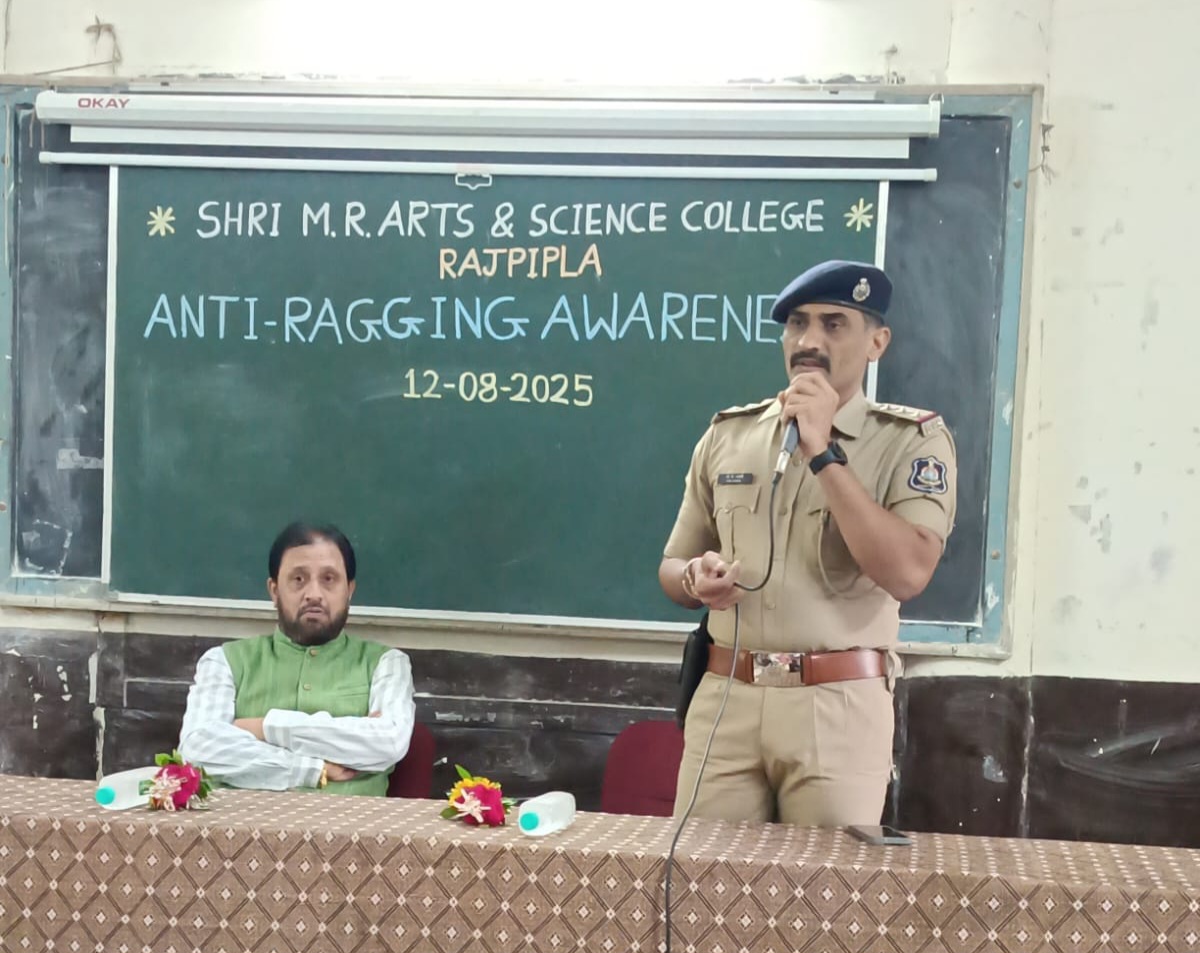 રાજપીપળાની એમ આર આર્ટસ એન્ડ સાયન્સ કોલેજમાં એન્ટીરાગિંગ વિષય અનુરૂપ જાગૃતિ વ્યાખ્યાનનું આયોજન કરવામાં આવ્યું હતું. કાર્યક્રમનો મુખ્ય હેતુ વિદ્યાર્થીઓને રેગિંગના ગેરકાયદેસર કૃતિઓ અને તેના ગંભીર કાયદાકીય પરિણામો વિશે માહિતગાર કરવાનો હતો જેથી કોલેજ કેમ્પસમાં ભયમુક્ત અને સુરક્ષિત શૈક્ષણિક વાતાવરણ જાળવી શકાય