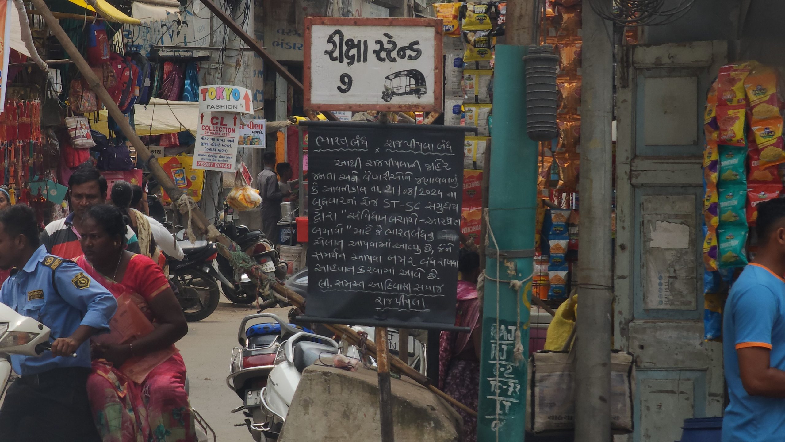 રાજપીપળાના મધ્યમાં આવેલ સફેદ ટાવર વિસ્તારમાં પણ આદિવાસી સમાજ દ્વારા ૨૧ ઓગષ્ટે ભારત બંધ નું બોર્ડ લગાવાયું છે વેપારીઓ ને બંધમાં જોડાવા અપીલ કરાઇ છે