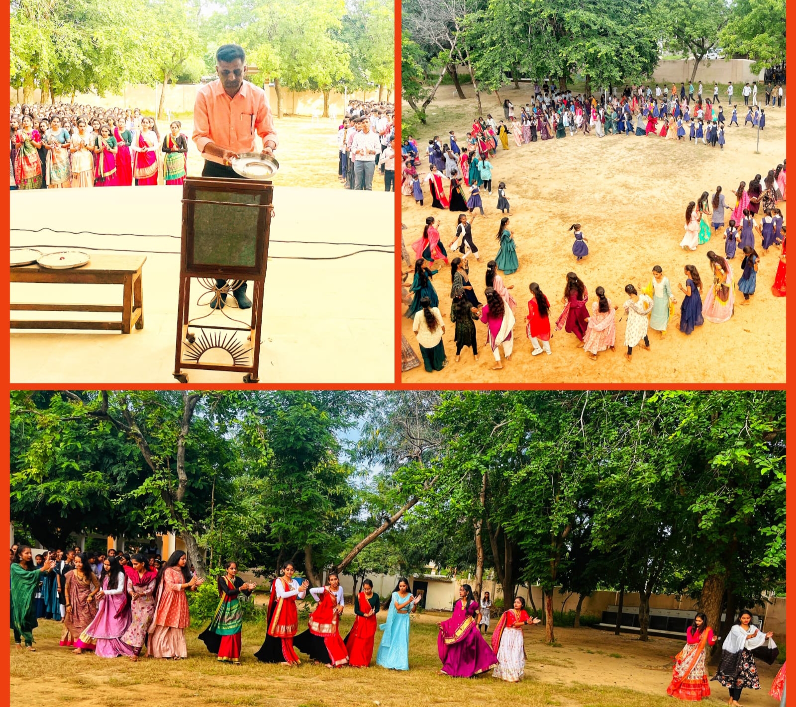 “યા દેવી સર્વ ભૂતેષુ શક્તિ રૂપેણ સંસ્થિતા,નમસ્તસ્યૈ નમસ્તસ્યૈ નમસ્તસ્યૈ નમો નમઃ “મા જગદજનની જગદંબાની આરાધનાનું પર્વ એટલે નવરાત્રિ.માં અંબેના ચોથા નોરતે તારીખ 5 ઓક્ટોબર 2024 ના દિને નવરાત્રિ આયોજન આચાર્યશ્રી રાજુભાઈ પ્રજાપતિ ના માર્ગદર્શન હેઠળ કરવામાં આવ્યું હતું. જેમાં ધોરણ ૯ થી ૧૨ ના તમામ વિદ્યાર્થીઓએ ભાગ લીધો હતો. દરરોજ ગણવેશ પરિધાન કરીને આવતા અમારી શેઠ શ્રી ટી.પી.હાઈસ્કૂલના વિદ્યાર્થીઓ આજે પરંપરાગત પોશાકમાં આવ્યા, રોજ એક જ પ્રકારના ગણવેશમાં જોયેલા બાળકો આજે કંઈક આ શાળાકીય નવરાત્રીમાં અલગ રંગે રંગાયા હોય એવું લાગતું હતું. તમામ બાળકો ડી.જે. ના તાલે મા શક્તિની આરાધનામાં જોડાયા ત્યારે શાળાનું પ્રાંગણ જાણે જીવંત બન્યું હોય અને સમગ્ર વાતાવરણમાં નવી ઉર્જાનો સંચય થયો હોય એવી અનુભૂતિ થઇ. આ નવરાત્રિ પર્વ થકી શાળા પરિવારમાં નવી ચેતનાનો આવિર્ભાવ થાય એવી શુભેચ્છાઓ સહ આ પર્વમાં સહભાગી બનવા માટે સમગ્ર શાળા પરિવારને અભિનંદન અને આ કાર્યક્રમમાં ડી.જે. લાવવામાં સહભાગી બનનાર તમામ વિદ્યાર્થીઓને ખૂબ ખૂબ અભિનંદન પાઠવ્યા હતા.
