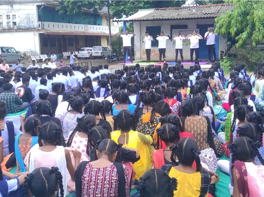 નવસારી,તા.૧૩: નિયામકશ્રી આયુષની કચેરી ગાંધીનગર તથા જિલ્લા આયુર્વેદ અધિકારીશ્રી ડો. કાજલ મઢીકરના માર્ગદર્શન હેઠળ ૧૦૦ દિવસ યોગ ઉજવણીના ભાગરૂપે ચીખલી તાલુકાના આયુષ્માન આરોગ્ય મંદિર (આયુષ) ઢોલુમ્બર, માંડવખડક અને કાકડવેલ દ્વારા તા. ૧૩/૦૬/૨૦૨૫ શુક્રવાર ના રોજ શ્રી ગ્રામ્ય સેવા ટ્રસ્ટ ધામધુમા અને માધ્યમિક શાળા ધામધુમાના સહયોગથી શાળાના પરિસર ખાતે યોગ સાંસ્કૃતિક કાર્યક્રમ અને સર્વરોગ નિદાન કેમ્પ આયોજન કરવામાં આવ્યું. જેમાં ચીખલી તાલુકાના આયુષ્માન આરોગ્ય મંદિર ખાતે કાર્યરત યોગ પ્રશિક્ષક દ્વારા યોગનું પ્રદર્શન કરવામાં આવ્યું અને નિષ્ણાત આયુર્વેદ મેડિકલ ઓફિસર દ્વારા તમામ વિદ્યાર્થીઓ, સ્ટાફ અને કર્મચારીના આરોગ્યની તપાસ અને નિદાન કરી સારવાર આપવામાં આવી હતી. કેમ્પમાં મોટી સંખ્યામાં શાળાના શિક્ષકો, વિદ્યાર્થીઓ અને સ્ટાફે ભાગ લીધો તથા મેડીકલ ઓફીસર ડૉ. આશિષ પટેલ, ડૉ. પાર્થ પટેલ અને ડો. દિલીપ આહીર દ્વારા માનસિક સ્વાસ્થ્ય માટે યોગ અને પ્રાણાયમનું મહત્વ સમજાવવામાં આવેલ. યોગ શિક્ષક રોહિત મૈસૂરિયા, મનોજ ગરાસિયા,આર્યન પટેલ, રેખાબેન આહિર, નિમિયા પટેલ, વૈશાલી પટેલ દ્વારા યોગ અને પ્રાણાયામ કરાવવામાં આવ્યા હતા