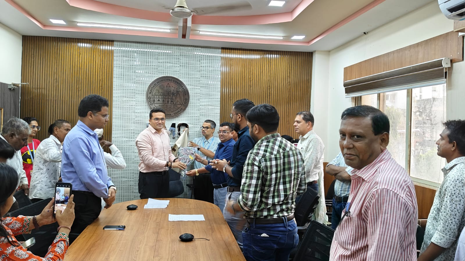 નવસારી મહાનગરપાલિકાના પ્રાંગણમાં  એક ભાવુક અને ગૌરવપૂર્ણ વિદાય સમારંભનું આયોજન કરવામાં આવ્યું હતું, જેમાં મહાનગરપાલિકામાં વર્ષો સુધી નિષ્ઠાપૂર્વક સેવા આપનાર પાંચ કર્તવ્યનિષ્ઠ અને સેવાભાવી કર્મચારીઓને વય મર્યાદા પૂર્ણ થતાં સન્માનભેર વિદાય આપવામાં આવી હતી. આ પ્રસંગે નગરપાલિકાના નાયબ કમિશનર શ્રી દેવ ચૌધરી સાહેબ, અન્ય ઉચ્ચ અધિકારીઓ, અને મોટી સંખ્યામાં પાલિકાના કર્મચારીઓ ઉપસ્થિત રહી, સેવાનિવૃત્ત થનાર કર્મચારીઓના યોગદાનને બિરદાવ્યું હતું.જે પાંચ કર્મચારીઓએ તેમની લાંબી અને સમર્પિત સેવા બાદ નિવૃત્તિ લીધી છે તેમાં વહીવટી અધિકારી તરીકે ફરજ બજાવતા વિનોદભાઈ રામજીભાઈ ડાભી નો સમાવેશ થાય છે. તેમણે વહીવટી કાર્યોમાં તેમની કાર્યદક્ષતા અને અનુભવનો પૂરો લાભ પાલિકાને આપ્યો હતો. જન્મ-મરણ નોંધણી શાખામાં ફરજ બજાવતા કિરણભાઈ આર. ટેલર એ પણ તેમની શાખામાં મહત્વપૂર્ણ યોગદાન આપ્યું હતું.જોકે કિરણભાઈ એ સ્વેચ્છિક નિવૃત્તિ લીધી હતી. જ્યારે પંપમેન તરીકે ફરજ બજાવતા  રાજુભાઈ સીતારામભાઈ ગંડાણે એ પાણી પુરવઠા જેવી અતિ મહત્વની સેવાઓમાં પોતાનો મહત્તમ ફાળો આપ્યો હતો.ત્યારબાદ ડ્રેનેજ વિભાગમાં ફરજ બજાવતા છીબુભાઈ વલ્લભભાઈ રાઠોડ એ શહેરની સ્વચ્છતા અને આરોગ્ય જાળવણીમાં અગ્રિમ ભૂમિકા ભજવી હતી. આ ઉપરાંત, સફાઈ કામદાર તરીકે ફરજ બજાવતા શ્રીમતી ધનુબેન નાથાભાઈ રાઠોડ અને મે. કામદાર તરીકે ફરજ બજાવતા બળદેવભાઈ સોમાભાઈ રાઠોડ એ પણ શહેરની સફાઈ અને વ્યવસ્થા જાળવવામાં અથાક પરિશ્રમ કર્યો હતો.આ વિદાય સમારંભમાં, નાયબ કમિશનર શ્રી દેવ ચૌધરીએ પ્રત્યેક કર્મચારીની સેવાને યાદ કરીને તેમના કાર્યોને બિરદાવ્યા હતા.  પાલિકાના અન્ય અધિકારીઓ અને સહકર્મીઓએ પણ નિવૃત્ત થતા કર્મચારીઓ સાથેના તેમના અનુભવો અને સંસ્મરણો વાગોળ્યા હતા અને તેમને ભાવભીની શુભેચ્છાઓ પાઠવી હતી.સમારંભના અંતે, નાયબ કમિશનર શ્રી દેવ ચૌધરીના હસ્તે પાંચેય કર્તવ્યનિષ્ઠ કર્મચારીઓને પુષ્પગુચ્છ અને શાલ ઓઢાડી સન્માનિત કરવામાં આવ્યા હતા. આ સન્માન એ તેમની વર્ષોની નિઃસ્વાર્થ સેવા અને પ્રત્યેક નાગરિક પ્રત્યેની તેમની પ્રતિબદ્ધતાની કદર હતી. આ પ્રસંગે નિવૃત્ત થતા કર્મચારીઓએ પણ મહાનગરપાલિકા દ્વારા આપવામાં આવેલા સહયોગ અને સન્માન બદલ આભાર વ્યક્ત કર્યો હતો.આ વિદાય સમારંભ નવસારી મહાનગરપાલિકાની પારિવારિક ભાવના અને કર્મચારી કલ્યાણ પ્રત્યેની પ્રતિબદ્ધતાનું ઉત્તમ ઉદાહરણ પૂરું પાડે છે. નિવૃત્ત થતા કર્મચારીઓને તેમના ભાવિ જીવન માટે શુભકામનાઓ પાઠવવામાં આવી હતી, અને આશા વ્યક્ત કરવામાં આવી હતી કે તેઓ તેમના નિવૃત્તિ જીવનને સ્વસ્થ અને સુખી રીતે પસાર કરશે.