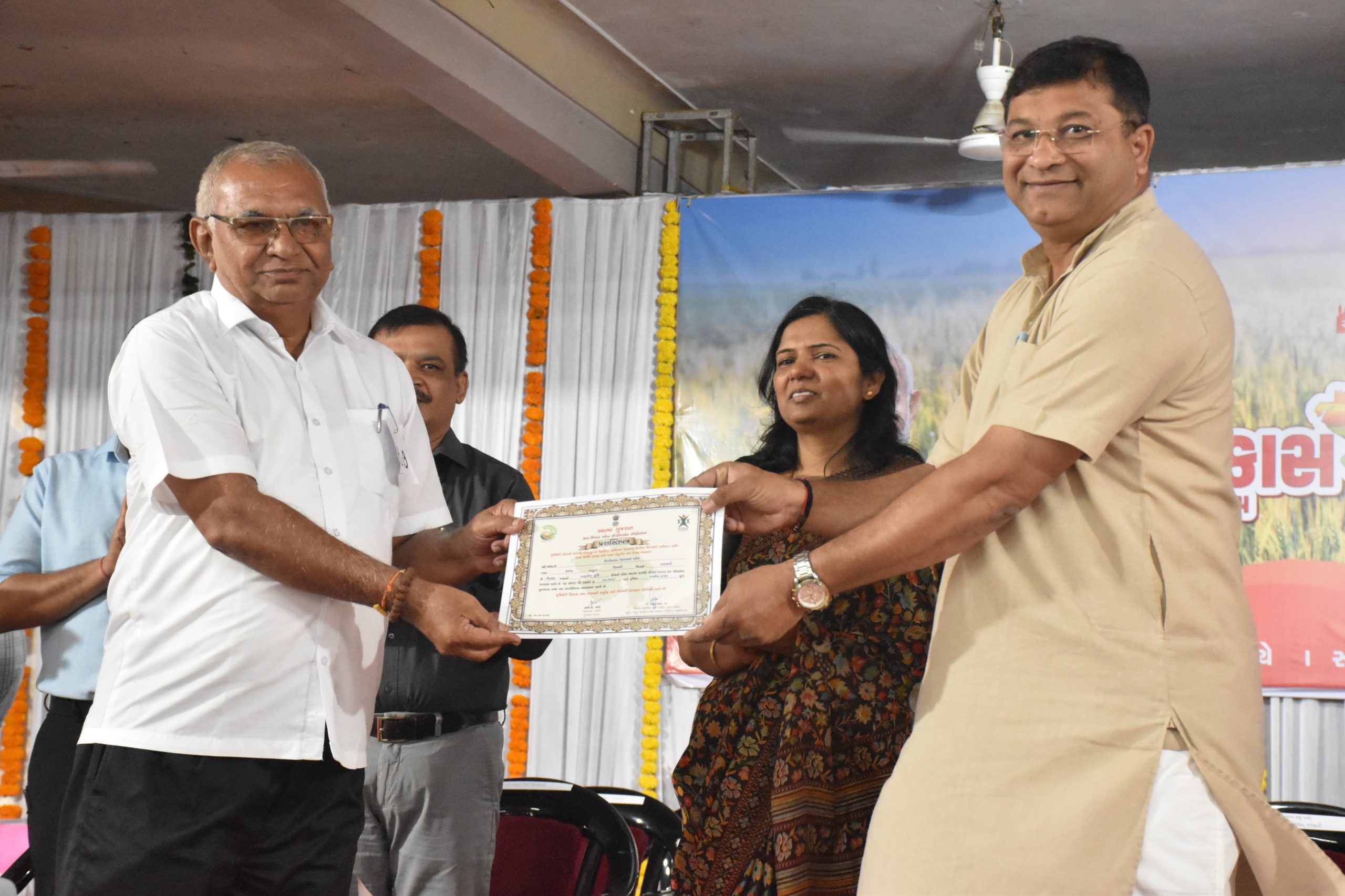 ખેડૂતોને ખેતીવાડીની વિવિધ યોજનાના મંજૂરીપત્રો  તેમજ સહાયના વિતરણ મહાનુભાવોના હસ્તે કરવામાં આવ્યું