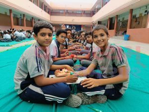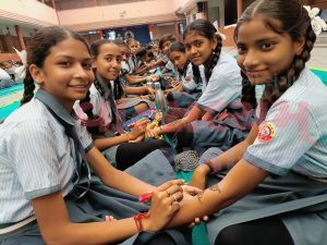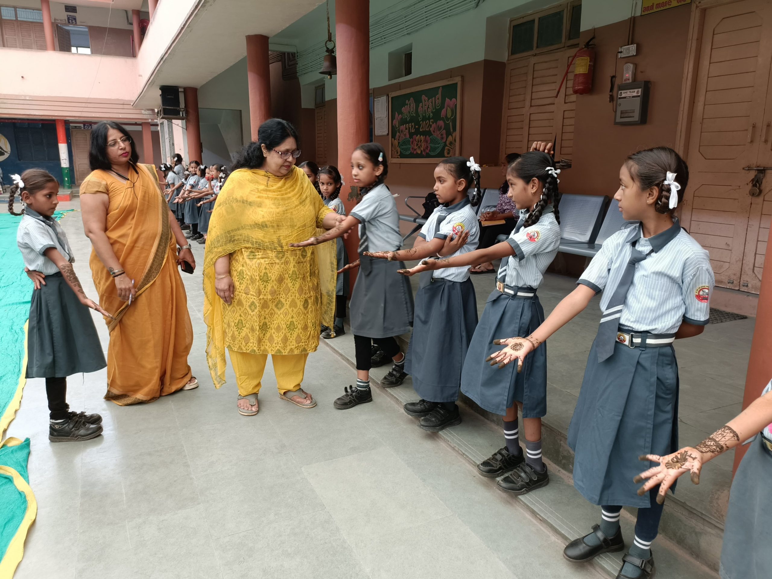 હાલોલ:વી.એમ.શાહ ગુજરાતી મીડિયમ સ્કૂલ ખાતે ગૌરી-વ્રત નિમિતે શાળામાં મહેંદી હરીફાઈ યોજાઈ