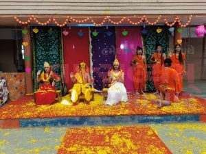 હાલોલ ના ગોધરા રોડ ખાતે આવેલ વી.એમ.શાહ ગુજરાતી મીડિયમ પ્રાથમિક વિભાગ શાળામાં “દિવાળી પર્વ” નિમિતે રંગોળી સ્પર્ધા,થાળી ડેકોરેશન, દિવા ડેકોરેશન જેવી વિવિધ સ્પર્ધાનું બે ગ્રુપ વચ્ચે આયોજન કરવામાં આવ્યું હતું.જેમાં ધો-૫ થી ૮ ના વિદ્યાર્થીઓએ ઉત્સાહભેર ભાગ લીધો સાથે શાળા માં “દિવાળી”ઉજવણી નું આયોજન કરવામાં આવ્યું હતું જેમાં કાર્યક્રમ ના મુખ્ય અતિથિ માં જે.એસ.ડબ્લ્યુ એમ.જી મોટર ઇન્ડિયા હાલોલ ના ડેપ્યુટી જનરલ મેનેજર શાલિનીબેન જોહરી સાથે બરોડા સીટીઝન કાઉન્સલિંગ ના પ્રોજેકટ મેનેજર મિસ્ટર જયેશભાઈ અમરેલીયા તથા વિશેષ અતિથિ માં ફાઉન્ડર ઓફ એસ.ડી એન્જિનિયરિંગ ના વડોદરા થી શશીકાંતભાઈ ધમલ એ પોતાની હાજરી નોંધાવી હતી.જેમાં કાર્યક્રમ ની શરૂઆત ઉપસ્થિત મહેમાન દ્વારા દીપ-પ્રાગટ્ય થી કરવામાં આવી હતી ત્યારબાદ શાળાના ધો-૬ થી ૮ ના વિદ્યાર્થીઓ અને શાળા ના ડાન્સ શિક્ષક તેમજ કોરિયોગ્રાફર અર્જુનભાઈ દ્વારા “દિવાળી-પર્વ” માં ભગવાન શ્રી રામ ના આયોધ્યા આગમન અંગે નું નાટક રજૂ કરી એક સમૂહ ડાન્સ નું આયોજન કરવામાં આવ્યુ હતુ ત્યારબાદ શાળા ના વિદ્યાર્થીઓ દ્વારા ટ્રેડિશનલ રેમ્પ વોલ્ક(ફેશન શો) નું આયોજન કરવામાં આવ્યું હતું અને કે.જી વિભાગ ના નાના-નાનાં ભૂલકાઓ દ્વારા “હેપી-દિવાળી” ડાન્સ નું પ્રદર્શન કરવામાં આવ્યું હતુ આમ સમગ્ર કાર્યક્રમ ના અંતે આજ ની દરેક સ્પર્ધમાં નંબર મેળવેલ ૧૩ વિદ્યાર્થીઓ ને ઉપસ્થિત મહેમાન અને આજના આ સ્પર્ધાના નિર્ણાયક નીલમબેન ધમલ મેડમ દ્વારા સર્ટિ-ફિકેટ અર્પણ કરી વિજેતા ૧૩ વિદ્યાર્થીઓ ને ફાઉન્ડર ઓફ એસ.ડી એન્જિનિયરિંગ અને જે.એસ.ડબ્લ્યુ એમ.જી મોટર ઇન્ડિયા હાલોલ દ્વારા ઇનામ અર્પણ કરવામાં આવ્યા હતા અંતે વી.એમ.શાહ ગુજરાતી મીડિયમ પ્રાથમિક વિભાગ ના આચાર્ય હર્ષાબેન શુક્લ દ્વારા ઉપસ્થિત મહેમાન નો આભાર માની દિવાળી ની શુભકામનાઓ પાઠવવામા આવી હતી.આમ આજ ના આ સમગ્ર કાર્યક્રમ નું સંચાલન વી.એમ.શાહ ગુજરાતી મીડિયમ પ્રાથમિક વિભાગ શાળા ના સુપરવાઈઝર મિલનકુમાર શાહ દ્વારા કરવામાં આવ્યું હતું અને કાર્યક્રમ ની પુર્ણાહુતી કરવામાં આવી હતી.