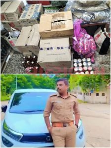 જિલ્લામાં દારૂ પકડાવવા નો સિલસિલો યથાવત છે ત્યારે અરવલ્લી જિલ્લા લોકલ ક્રાઈમ બ્રાન્ચની ટીમને મોટી સફળતા હાથ લાગી છે. અરવલ્લી જિલ્લા લોકલ ક્રાઈમ બ્રાન્ચના પી.આઈ. એચ.પી.ગરાસીયા ની સૂચનાથી પી.એસ.આઈ. વી.જે.તોમર તેમજ ટીમ ધનસુરા પોલીસ સ્ટેશન વિસ્તારમાં પેટ્રોલિંગમાં હતા ત્યારે રહીયોલ ફાટક પાસે જતાં બાતમીદારથી ચોક્કસ બાતમી મળી હતી કે, રહીયોલ મુકામે રહેતો, વિજયકુમાર છનાભાઈ પરમાર પોતાના કબજા ભોગવટાના રહેણાંક મકાનમાં ભારતીય બનાવટનો ગેરકાયદેસર વિદેશી દારૂનો જથ્થો સંતાડી રાખ્યો છે. ચોક્કસ બાતમીના આધારે અરવલ્લી જિલ્લા લોકલ ક્રાઈમ બ્રાન્ચની ટીમે વિજયકુમાર છનાભાઈ પરમારના રહેણાંક ઘરે જઈ, આસપાસના વિસ્તારમાં તપાસ કરતા, કોઈ મળી આવ્યું નહોતું. પોલિસે ઘરના રસોડામાં ભોયતળીયે જુદી જુદી બ્રાન્ડની ભારતીય બનાવટની વિદેશી દારૂ તથા બીયરની પેટીઓ તથા છુટી બોટલો અને ટીન મળી આવ્યા હતા. પોલિસે વિદેશી દારૂનો જથ્થો તપાસ કરતા જુદી જુદી બ્રાન્ડની આખી પેટી નંગ- 22, કુલ બોટલ/ટીન નંગ-912 તથા છુટી બોટલ/ટીન નંગ-157 મળી કુલ બોટલો/ ટીન નંગ-1069 બોટલ મળી હતી. પોલિસે કુલ કિ.3.1,76,680/- રૂપિયાનો વિદેશી દારૂનો જથ્થો, બુટલેગર પોલિસ કર્મચારી વિજયકુમાર છનાભાઇ પરમાર રહે.રહીયોલ તા.ધનસુરા જી.અરવલ્લી ઘરે રેડ પાડી, ધનસુરુ પોલિસની નાક નીચેથી પકડી પાડ્યો હતો.