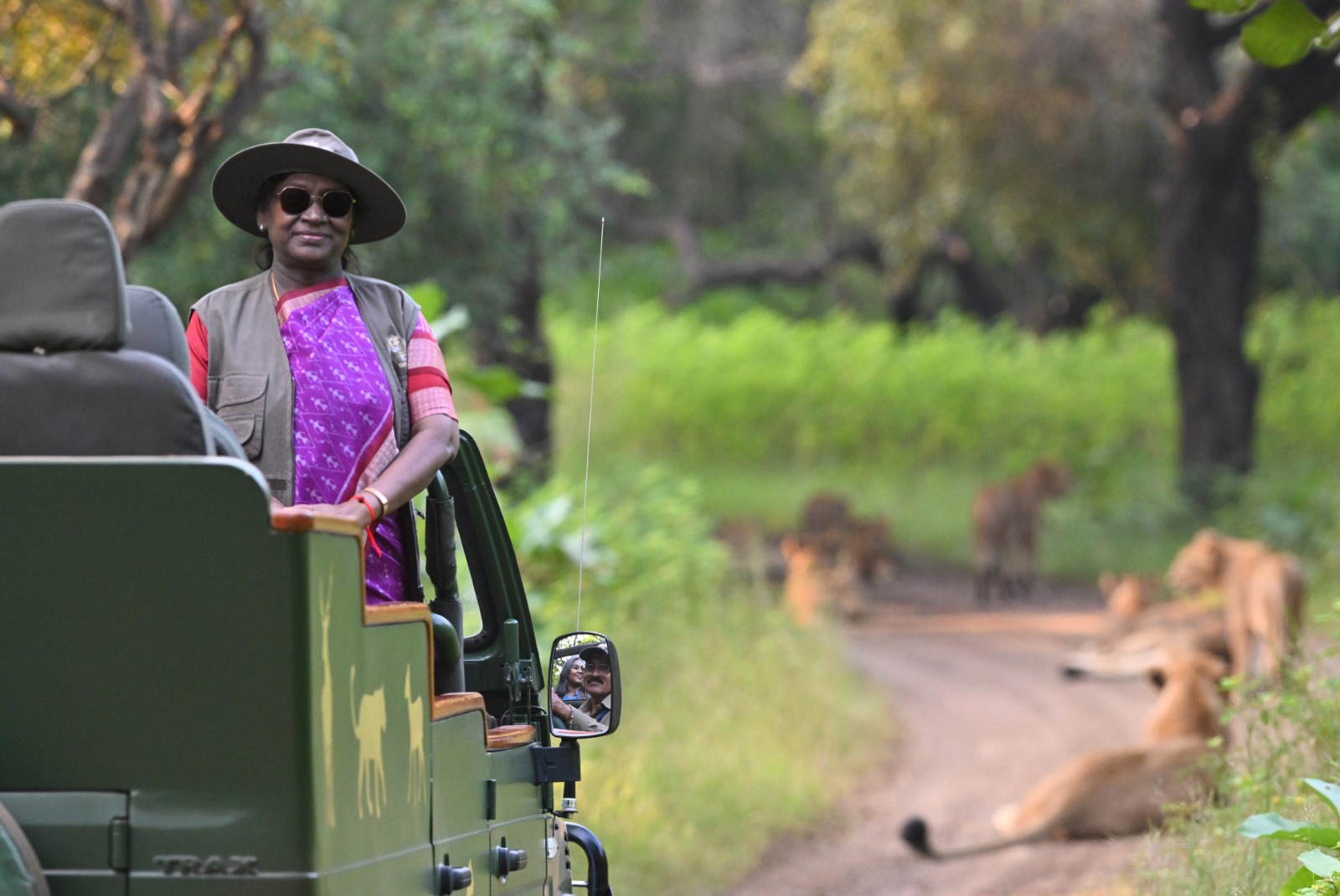 રાષ્ટ્રપતિ શ્રીમતી દ્રોપદી મુર્મુ ગુજરાતની મુલાકાતે છે. શ્રી સોમનાથ મહાદેવના દર્શન બાદ રાષ્ટ્રપતિ શ્રીમતી દ્રૌપદી મુર્મુનું જૂનાગઢ જિલ્લાના સાસણ નજીકના ભાલછેલ હેલીપેડ ખાતે ઉષ્માસભર સ્વાગત કરવામાં આવ્યું હતું. સાસણ ગીરની મુલાકાતે પધારેલા રાષ્ટ્રપતિશ્રીને રાજ્યના વન અને પર્યાવરણ મંત્રી શ્રી મુળુભાઇ બેરા, વન અને પર્યાવરણ વિભાગના પ્રિન્સિપલ સેક્રેટરી શ્રી સંજીવકુમાર, વન વિભાગના મુખ્ય વન સંરક્ષક ડો. એ.પી. સિંઘ, કલેકટર શ્રી અનિલકુમાર રાણાવસિયા અને જિલ્લા પોલીસ વડા શ્રી સુબોધ ઓડેદરાએ પુષ્પગુચ્છ અર્પણ કરી આવકારી સ્વાગત કર્યું હતું રાષ્ટ્રપતિએ જણાવ્યું કે ભારત સરકારે આદિવાસી લોકોના કલ્યાણ માટે વિવિધ પહેલ શરૂ કરી છે.તેમણે બધાને વિકાસલક્ષી અને કલ્યાણકારી યોજનાઓ વિશે માહિતી મેળવવા અને તેનો લાભ લેવા ઉપરાંત તેમના ગામ અને સમુદાયના લોકોને તે યોજનાઓ સાથે જોડવા માટે પણ વિનંતી કરી હતી.રાષ્ટ્રપતિએ કહ્યું કે આદિવાસી સમુદાયની પ્રકૃતિ-મૈત્રીપૂર્ણ જીવનશૈલી બધા માટે પ્રેરણાનો સ્ત્રોત છે રાષ્ટ્રપતિએ કહ્યું કે આપણા આદિવાસી ભાઈ-બહેનોની સક્રિય ભાગીદારીથી, આપણે એવા સમાજ અને દેશનું નિર્માણ કરવા માટે કામ કરી રહ્યા છીએ જ્યાં સમાનતા, ન્યાય અને આદરનું વાતાવરણ હોય, જ્યાં આદિવાસી સમાજની સંસ્કૃતિ અને પરંપરાઓ સચવાય અને આપણા આદિવાસી ભાઈ-બહેનોના અધિકારોનું રક્ષણ થાય. 2047 સુધીમાં ભારતને વિકસિત રાષ્ટ્ર બનાવવા માટે આ મહત્વપૂર્ણ છે.