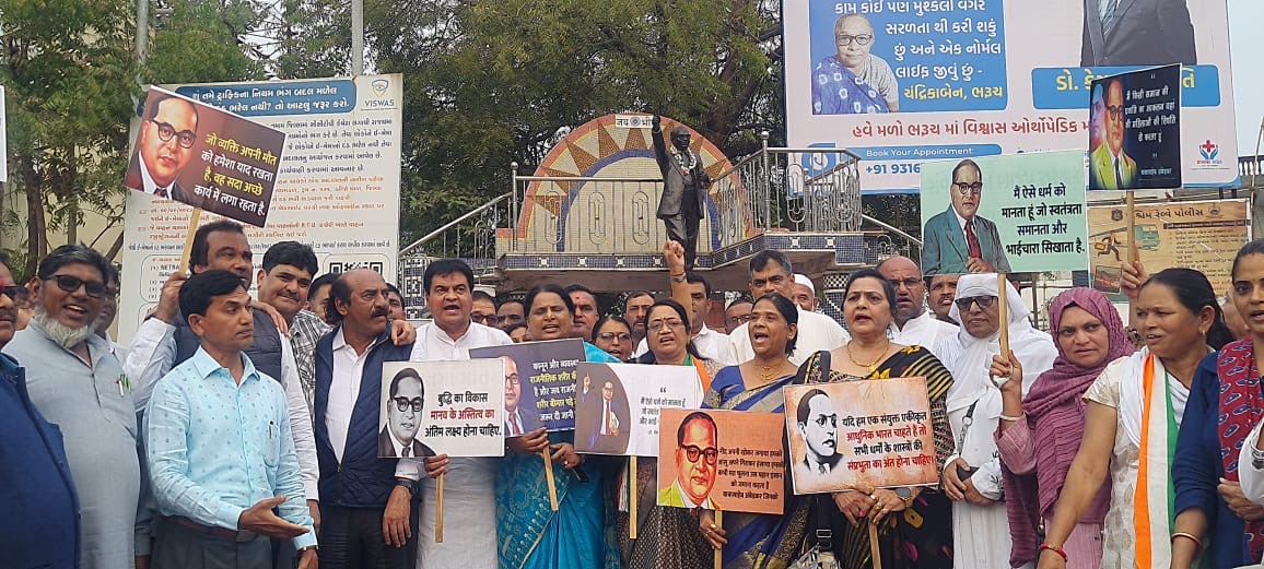 રેલવે સ્ટેશનથી ડોક્ટર બાબા સાહેબ આંબેડકરની પ્રતિમા પાસે પ્લેકાર્ડ અને સૂત્રોચ્ચાર સાથે વિરોધ નોંધાવાયો…