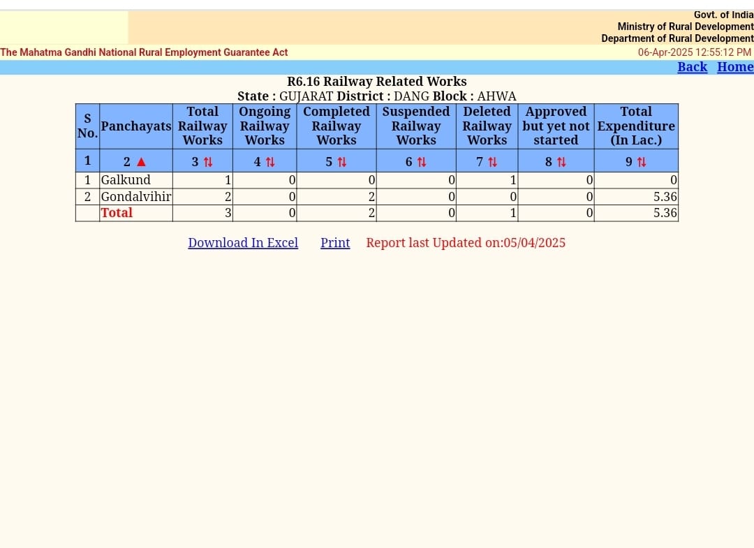 બોક્ષ:-ધર્મેન્દ્ર ટંડેલ-એપીઓ આહવા તાલુકા પંચાયત.. આ બાબતે આહવા તાલુકા પંચાયતનાં મનરેગાનાં એ.પી.ઓ ધર્મેન્દ્રભાઈ ટંડેલ દ્વારા જણાવ્યુ હતુ આ કામો 2019નાં છે.અને ઓનલાઈન રિપોર્ટ કાર્ડમાં પ્રોબ્લેમ હોવાનાં પગલે આ ઈસ્યુ દેખાઈ છે.જેમાં ગોંડલવિહીર ગ્રુપ ગ્રામ પંચાયતમાં ગોટામેટલનું કામ સરકારનાં નીતિનિયમો મુજબ થયુ છે.અહી ગોટામેટલનાં કામનાં નામની જગ્યાએ રેલવેનું કામ રિપોર્ટકાર્ડનાં ઈસ્યુનાં પગલે દેખાઈ છે.જેમાં અમારી કોઈ ભૂલ નથી.આ ઈસ્યુ ડાંગ જિલ્લામાં જ નહીં પરંતુ ઓનલાઈન રિપોર્ટ કાર્ડનાં ખામીનાં કારણે દરેક જિલ્લાની મનરેગા સીટ રિપોર્ટ કાર્ડમાં રેલવેનું કામ સ્ક્રીન પર દેખાઈ છે.અમોએ કોઈ ભ્રષ્ટાચાર કર્યો નથી.અમોએ નીતિ નિયમો મુજબ કામો પૂર્ણ કર્યા છે.ડાંગ કોંગ્રેસ યુવક પ્રમુખ રાકેશભાઈ પવાર અંગત અદાવત રાખી અમોને બદનામ કરવાનું કાવતરું કરી રહ્યા છે.
