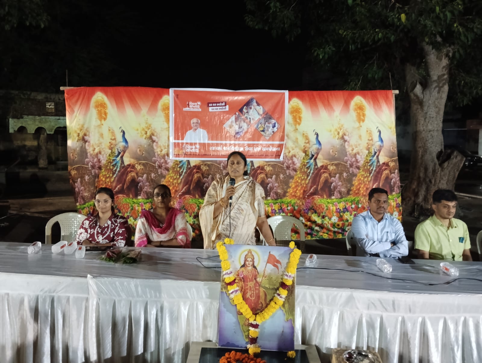 જિલ્લા પંચાયત પ્રમુખ શ્રીમતી પ્રવીણાબેન રંગાણીએ રાત્રિ સભામાં ગ્રામજનોને સંબોધતા કહ્યું હતું કે, વડાપ્રધાન શ્રી નરેન્દ્રભાઈ મોદીના શાસનમાં રાજ્ય અને દેશનો સ્વર્ણિમ વિકાસ થયો છે. શ્રી નરેન્દ્રભાઈએ જી.એસ.ટી.ના દર ઘટાડીને બચતોત્સવ શરૂ કરાવ્યો છે. ભારતની અર્થવ્યવસ્થા દુનિયામાં ખૂબ ઝડપથી વિકસતી હોવાનું પણ તેમણે ઉમેર્યું હતું. નાગરિકોને સરકારી કચેરીઓના ધક્કા ન ખાવા પડે તે માટે શ્રી નરેન્દ્રભાઈ વિકાસ સપ્તાહ અને સેવાસેતુના માધ્યમથી સરકારને જ નાગરિકોના ઘર આંગણે લાવ્યા હોવાનું પણ તેમણે જણાવ્યું હતું. આ કાર્યક્રમમાં ૫૦૦ જેટલા લોકોએ ભારત વિકાસ પ્રતિજ્ઞા લીધી હતી.