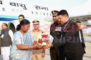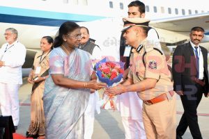 ગુજરાત રાજયની ત્રિદિવસીય મુલાકાતના ભાગરૂપે રાત્રિરોકાણ માટે રાજકોટ પધારેલા રાષ્ટ્રપતિશ્રી મુર્મુ