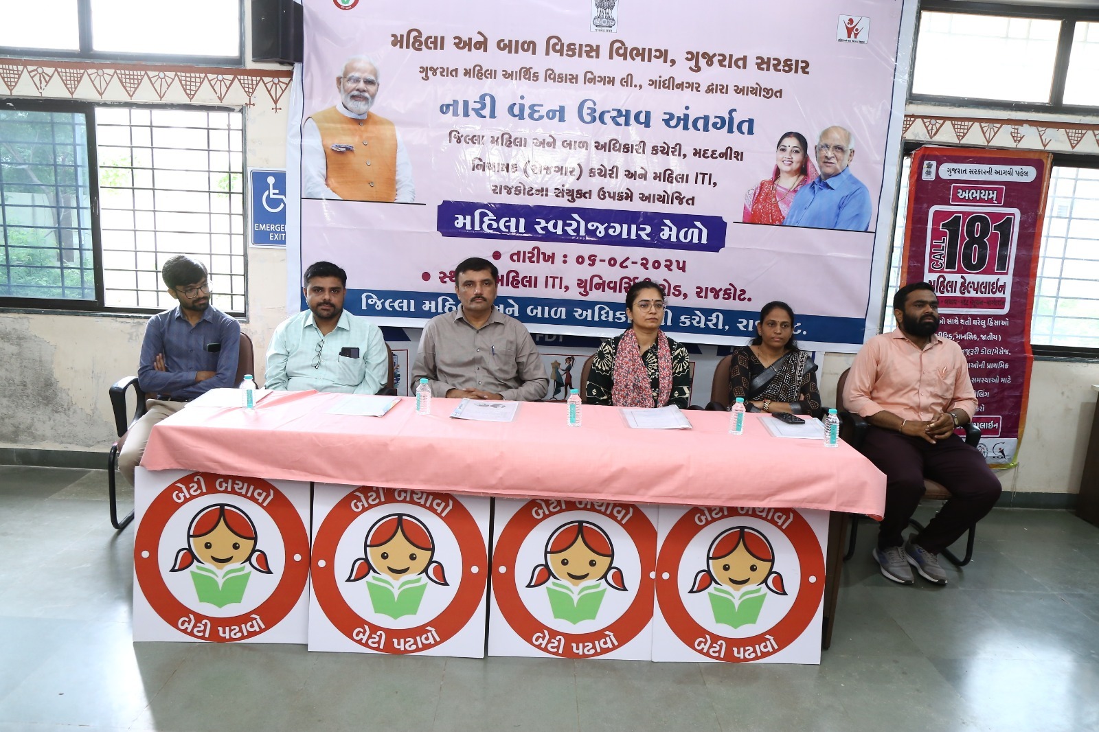 Rajkot: રાજકોટમાં ‘નારી વંદન ઉત્સવ’ના ભાગરૂપે ગતરોજ ‘મહિલા કર્મયોગી દિવસ’ની ઉજવણી કરવામાં આવી હતી. આ અવસરે ગુજરાત મહિલા આર્થિક વિકાસ નિગમ લિ.-ગાંધીનગરના ઉપક્રમે, જિલ્લા મહિલા અને બાળ અધિકારીની કચેરી, મદદનીશ નિયામક(રોજગાર) કચેરી અને મહિલા આઈ.ટી.આઈ. રાજકોટના સંયુક્ત ઉપક્રમે મહિલા સ્વરોજગાર મેળાનું આયોજન કરવામાં આવ્યું હતું. જેમાં ઈન્ટરવ્યૂ પછી ૬૩ મહિલાઓની જોબ માટે પ્રાથમિક પસંદગી કરવામાં આવી હતી.