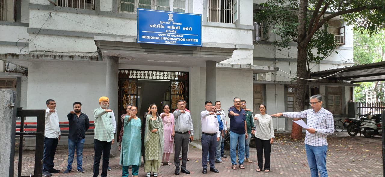Rajkot: પ્રાદેશિક માહિતી કચેરી, રાજકોટ ખાતે રાષ્ટ્રપિતા ગાંધીજીની જન્મજયંતી નિમિત્તે સ્વચ્છતા શપથ લેતા કર્મયોગીઓ