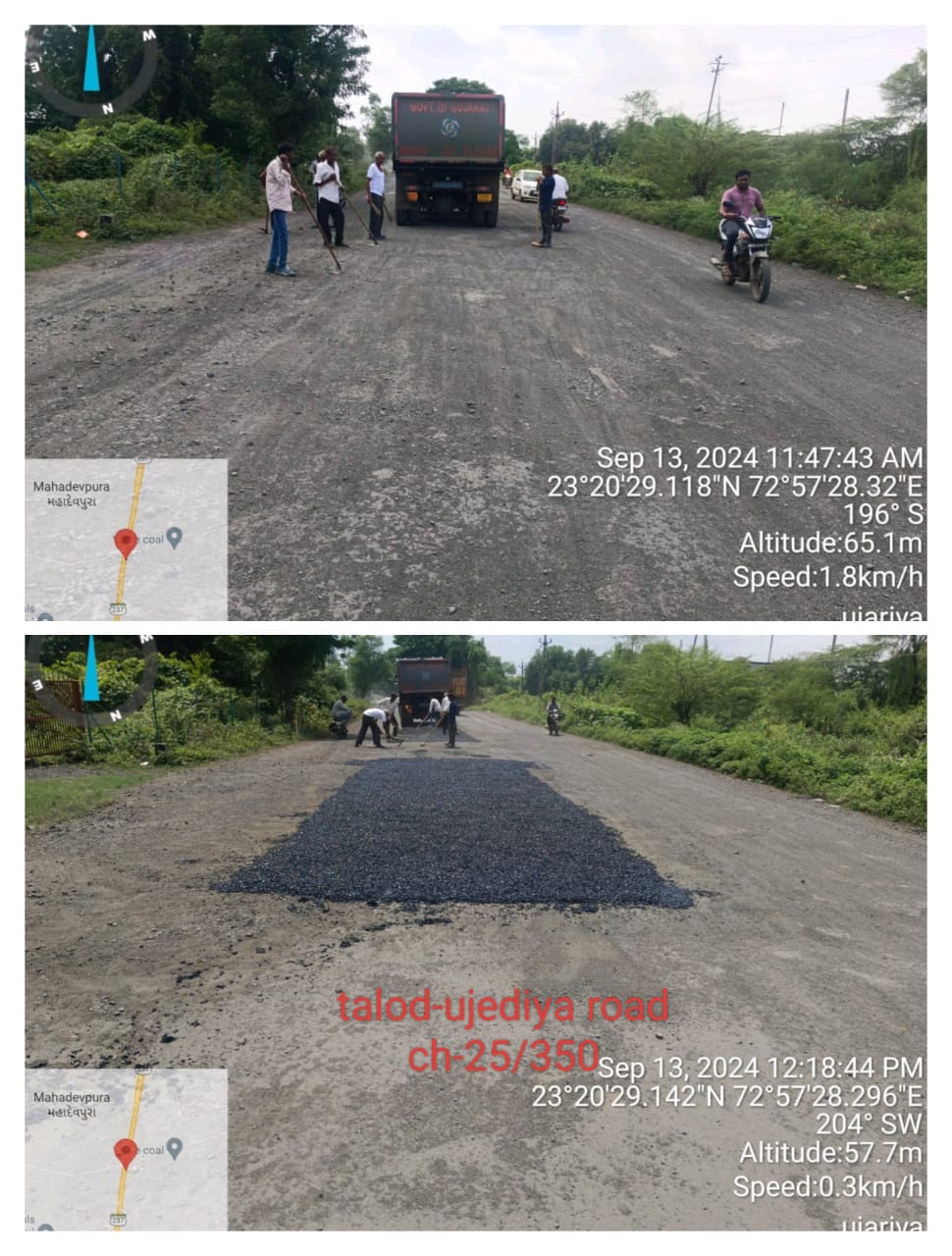સાબરકાંઠા જિલ્લાના અનેક માર્ગો પર ભારે વરસાદના કારણે માર્ગો ક્ષતિગ્રસ્ત બન્યા હતા. જે અંતર્ગત પ્રાંતીજ, હિંમતનગર, તલોદ હાઇવે માર્ગ પર પડેલા ખાડાઓમાં ડામર પેચવર્ક કરી માર્ગોને મરામત કરવાની કામગીરી હાથ ધરવામાં આવી છે.