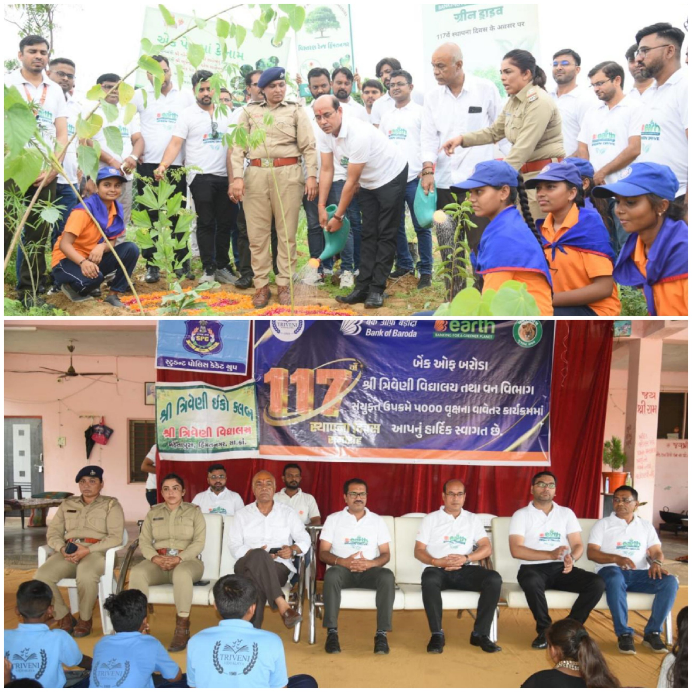 બેરણા ખાતે બેંક ઓફ બરોડાના ૧૧૭ મા સ્થાપના દિને પાંચ હજાર વૃક્ષો વાવી ઉજવણી કરાઇ