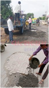 સાબરકાંઠા જિલ્લામાં વરસાદના કારણે જાહેર રસ્તાઓ ઉપર ખાડા પડવાથી હિંમતનગર નગરપાલિકા દ્વારા વરસાદના પગલે બિસ્માર થયેલા રસ્તાઓમાં મરામત કરવાની કામગીરી કરવામાં આવી હતી.