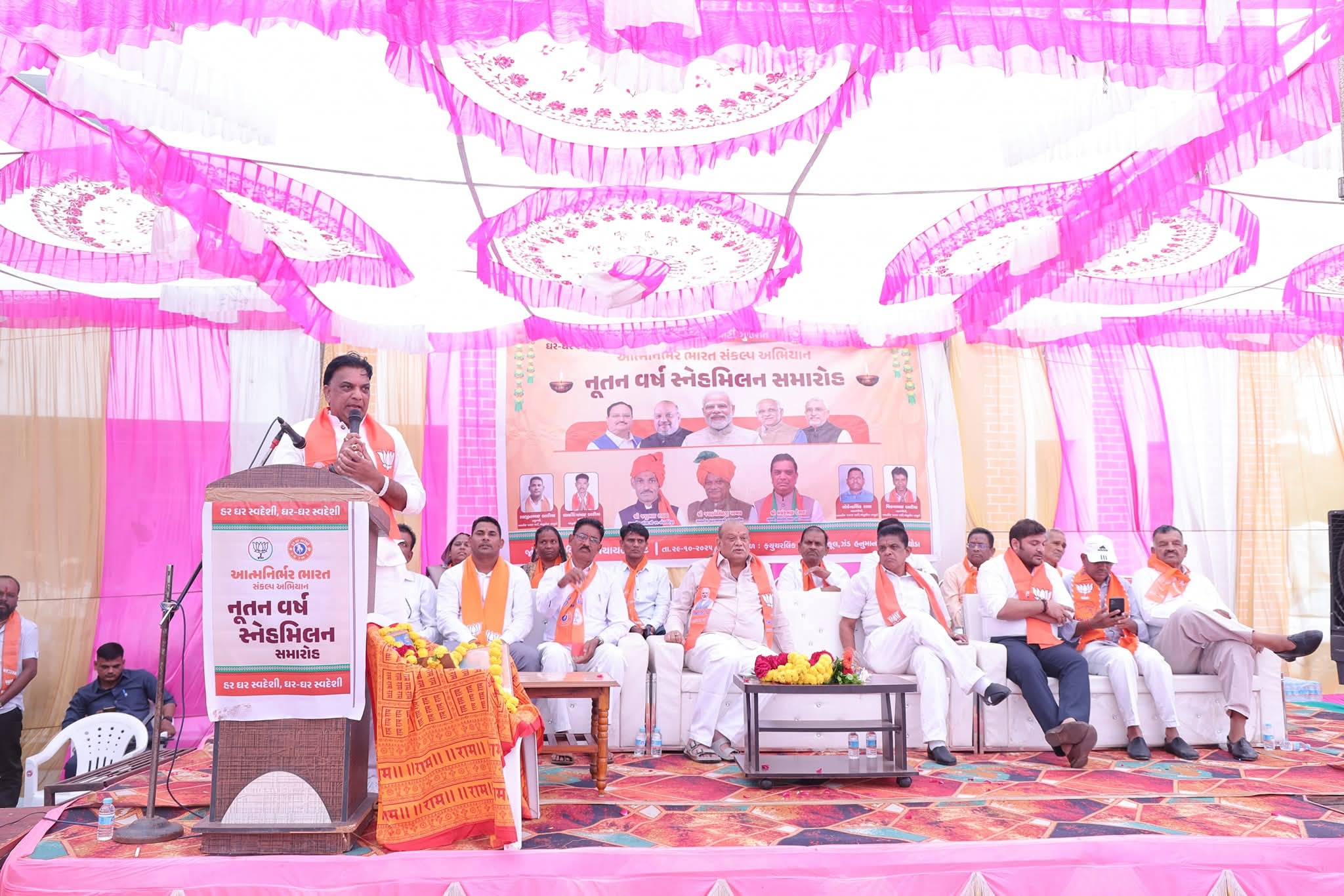 નવા વર્ષના શુભ અવસરે ભારતીય જનતા પાર્ટી મંડળ દ્વારા ફ્યુચર લિંક સાયન્સ સ્કૂલ ખાતે ભવ્ય સ્નેહ મિલન સંમેલનનું આયોજન આજે બુધવારના રોજ કરવામાં આવ્યું હતું.આ કાર્યક્રમમાં હાલોલના ધારાસભ્ય જયદ્રથસિંહ પરમાર, જિલ્લા ભાજપા પ્રમુખ મયંક કુમાર દેસાઈ, કણજરી સ્ટેટ યુવરાજ મયુરધ્વજસિંહ પરમાર તથા જાંબુઘોડા તાલુકા પંચાયત પ્રમુખ,જાંબુઘોડા તાલુકા ભાજપા પ્રમુખ સહિત મોટી સંખ્યામાં તાલુકાના કાર્યકરો ઉત્સાહભેર હાજર રહ્યા હતા.આ સંમેલન મા આવેલા તમામ મહેમાનો દ્વવારા દીપ પ્રાગટ્ય કરીને કાર્યક્રમનો શુભારંભ કરવામાં આવ્યો હતો.જ્યારે મહેમાનોનું ફુલહાર અને પુષ્પ ગુચ્છ આપી ઉષ્માભર્યું સ્વાગત કરવામાં આવ્યું હતું.આ પ્રસંગે જિલ્લા ભાજપા પ્રમુખ મયંક કુમાર દેસાઈએ પોતાના ઉદબોધનમા જાંબુઘોડા તાલુકામાં થયેલા લોકહિત અને વિકાસના કામોની વિગતવાર ચર્ચા કરી હતી.તેમણે વિશેષરૂપે કોરોના કાળ દરમિયાન ભાજપા કાર્યકરો દ્વારા કરાયેલી નિષ્ઠાપૂર્વક અને સેવાકીય કામગીરીને બિરદાવી હતી,અને કાર્યકરોને હંમેશા જનતાની સેવા માટે તત્પર રહેવા આહ્વાન કર્યું હતું.નૂતન વર્ષે સૌ કાર્યકરોએ સાથે મળીને સંગઠનને વધુ મજબૂત બનાવવાનો અને વિકાસની યાત્રાને આગળ વધારવાનો સંકલ્પ કર્યો હતો. આ સ્નેહ મિલનથી કાર્યકરોમાં નવો ઉત્સાહ અને જોમ જોવા મળ્યો હતો.