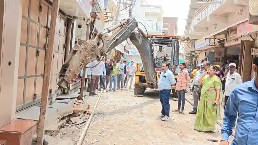 હાલોલ નગરના મેન બજારમાં ચાલી રહેલા રોડ બનાવવાની કામગીરીમાં અડચણરૂપ દબાણો હાલો નગર પાલિકા દ્વારા દૂર કરાયા હતા.હાલોલ નગરમાં ભૂગર્ભ ગટર યોજનાને લઇ ખોદવામાં આવેલ રોડ રસ્તાને લઇ નગરના તમામ રોડ રસ્તા ખરાબ થઇ ગયા હતા.જેથી દરેક વિસ્તારમાં તબક્કાવાર નવા રોડ રસ્તા બનાવામાં આવી રહ્યા છે.જે અંતર્ગત હાલોલ મેન બજારમાં હાલમાં રોડની કામગીરી ચાલી રહી છે.જેથી આ વિસ્તારના કેટલાક દુકાનદારોએ દુકાન ની આગળ નિકો ઉપર ઓટલાઓ અને પગથિયાં બનાવી ગેરકાયદેસર દબાણ કર્યા હતા.જેને કારણે બજારના રસ્તા સાંકડા થઈ ગયા હતા.જેને કારણે કેટલીક ફરિયાદો ઉપાડી હતી જેથી તે દબાણો સ્વૈચ્છિક રીતે દૂર કરવા જણાવ્યું હતું.છતાં પણ કેટલાક દુકાનદારોએ તે દબાણો દૂર ન કરતા આજે હાલોલ નગર પાલિકાના મુખ્ય અધિકારી હિરલબેન ઠાકર પાલીકા ટીમ સાથે પોલીસ બંદોબસ્ત સાથે હાલ બની રહેલા નવા રોડ ને અડચણ રૂપ ગેરકાયદેસર દબાણો દૂર કર્યા હતા.જોકે આ સમયે દુકાનદારોમાં રોષ જોવા મળ્યો હતો.