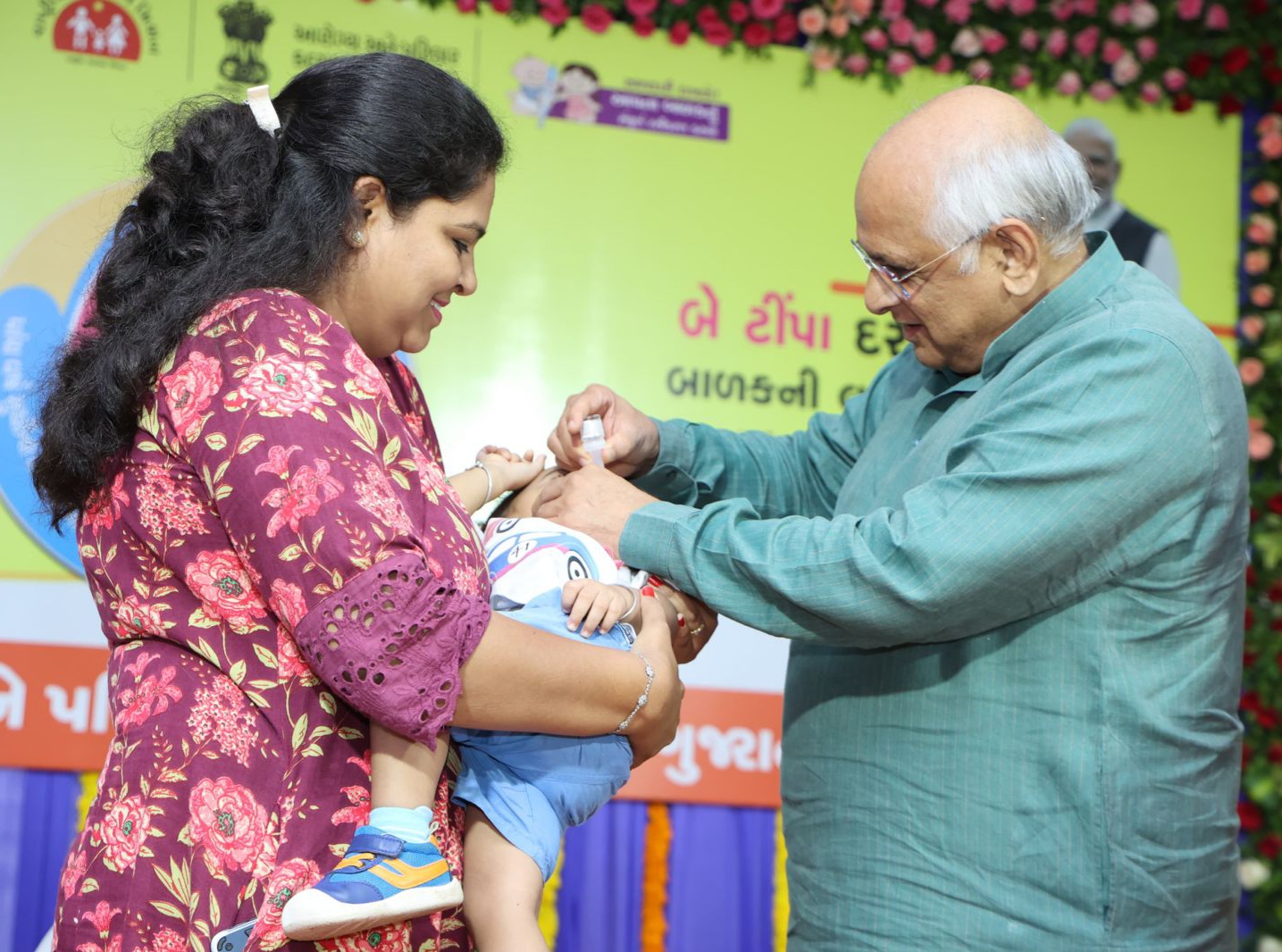 મુખ્યમંત્રી શ્રી ભૂપેન્દ્ર પટેલે ‘બાળ લકવા નાબૂદી અભિયાન-૨૦૨૪’ અન્વયે નેશનલ ઇમ્યુનાઈઝેશન ડે ૨૩ જૂન ૨૦૨૪ અંતર્ગત રાજ્યવ્યાપી પોલિયો વિરોધી રસીકરણનો ગાંધીનગરથી પ્રારંભ કરાવ્યો હતો.