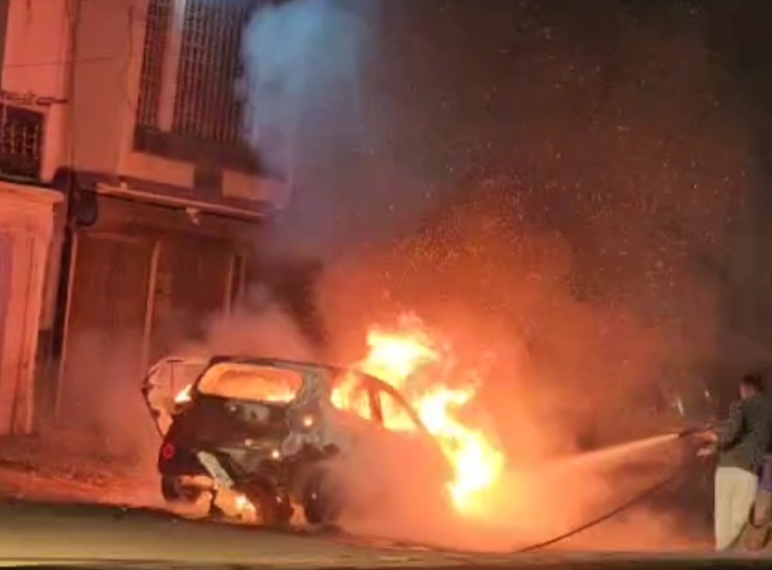 હાલોલ નગરમા પાવાગઢ રોડ કુંભારવાડા પાસે આજે ગુરૂવારે વહેલી સવારે એક હુન્ડાય કંપનીની કારમા અચાનક આગ લાગવાની ઘટણા બની હતી,જોકે સદનસીબે કોઇ જાનહાની થઈ ન હતી પરંતુ આગમાં કાર બળીને ખાખ થઇ જવા પામી હતી જ્યારે આગે એટલી વિકરાળ સ્વરૂપ ધારણ કરેલ કે મુખ્ય રોડ ઉપર અવર-જવર કરતા લોકો આશ્ચર્ય ચકિત થઈ ગયા હતા જ્યારે આગ લાગવાની ઘટણાની જાણ હાલોલ નગર પાલિકા ફાયર ફાઇટર ટીમ ને કરતા તાત્કાલિક ફાયર ની ટીમ ઘટણા સ્થળે પહોંચી આગ પર પાણીનો મારો ચલાવી આગ ઉપર કાબુ મેળવ્યો હતો પરંતુ કાર સંપૂર્ણ આગમાં ભસ્મ થઈ જવા પામી હતી જેથી કાર માલિક ને મોટું નુકસાન પહોંચ્યું હોવાનું જાણવા મળ્યું છે.