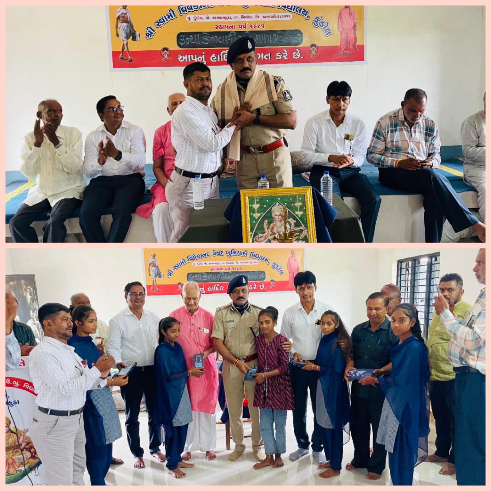 *અરવલ્લીની ગિરિમાળાઓમાં અંતરિયાળ અને અતિ પછાત વિસ્તારમાં આવેલી સ્વામી વિવેકાનંદ ઉત્તર બુનિયાદી વિદ્યાલય કુંડોલ, કાગડા મહુડા માં શિક્ષણ એ દેશના વિકાસની મજબૂત પાયાની ઇંટ છે આ વાક્યને સાર્થક કરતો ધોરણ નવ ના 51વિદ્યાર્થીઓનો શાળા પ્રવેશોત્સવ માનનીય IPS મનોજભાઈ નીનામા સાહેબના અધ્યક્ષ સ્થાને આજરોજ યોજાયો. શાળાના આચાર્ય કમલેશભાઈ પટેલ દ્વારા કાર્યક્રમની રૂપરેખા, સંસ્થાની સિદ્ધિઓ વર્ણવવામાં આવી હતી, તેમજ મહેમાનો નું શાબ્દિક તેમજ ચાલ સરપાવથી સ્વાગત કરવામાં આવ્યું હતું, મહેમાનોના હસ્તે ધોરણ નવ ના 51 વિદ્યાર્થીઓને સ્કુલ બેગ, વોટર બેગ, કંપાસ બોક્સ, જેવી શૈક્ષણિક કીટ આપીને શાળા પ્રવેશોત્સવ કરાવવામાં આવ્યો હતો, ધોરણ 10 માર્ચ 2025 માં પ્રથમ ત્રણ ક્રમાંક પ્રાપ્ત કરનાર વિદ્યાર્થીઓને અધ્યક્ષ શ્રી ના હસ્તે રોકડ પુરસ્કાર એનાયત કરવામાં આવ્યો જેના દાતા શંકરભાઈ કળબ નિવૃત શિક્ષક એ યોગદાન આપ્યું હતું, સંસ્થાના સંચાલક સોનજીભાઈ બારીયા સાહેબે આઈપીએસ અધિકારીએ અમારી સંસ્થાના આશ્રમ શાળાના પૂર્વ વિદ્યાર્થી હોવાથી ગુરુ શિષ્યની તેમજ તેમના જીવનમાંથી વિદ્યાર્થીઓને આગળ આવવાની પ્રેરણા આપી હતી, જિલ્લા સદસ્ય વનરાજભાઈ ડામોર સાહેબે અંતરિયાળ અને અતિ પછાત વિસ્તારના બાળકોને શિક્ષણમાં જાગૃતતા લાવવા માટેના શાળા દ્વારા થઈ રહેલા પ્રયત્નોને બિરદાવ્યા હતા, કાર્યક્રમના અધ્યક્ષ આઇપીએસ મનોજભાઈ નીનામા સાહેબે માતૃ સંસ્થામાં આવવાનો મોકો મળ્યો એ બદલ ગૌરવ અનુભવી રહ્યા હતા તેમજ વિદ્યાર્થીઓને આવનારા ભવિષ્યને ધ્યાને રાખી ઉત્તમ કોટીનું શિક્ષણ મેળવવાનું તેમજ સ્પર્ધાત્મક પરીક્ષાઓની વિશદ ચર્ચા કરી વિદ્યાર્થીઓને પ્રેરિત કર્યા હતા, તેમજ શાળા દ્વારા થઈ રહેલી પ્રવૃત્તિઓને બિરદાવી હતી, તેમજ તેમના ગુરુજી સોનજી દાદા નું સન્માન તેમના હસ્તે કર્યું હતું,પર્યાવરણના જતનના સંકલ્પને સાર્થક કરતો વૃક્ષારોપણ કરવામાં આવ્યું હતું ગામમાંથી અગ્રણીઓ તેમજ વાલીઓ ઉપસ્થિત રહ્યા હતા, શાળાના શિક્ષક ધ્રુવકુમાર કે પટેલે સમગ્ર કાર્યક્રમની આભાર વિધિ કરી હતી, સમગ્ર કાર્યક્રમને સફળ બનાવવા માટે શાળાના સ્ટાફ અને વિદ્યાર્થીઓ દ્વારા ખૂબ જ જહેમત ઉઠાવા બદલ શાળાના આચાર્ય કમલેશભાઈ પટેલે ખૂબ ખૂબ અભિનંદન પાઠવ્યા હતા.*