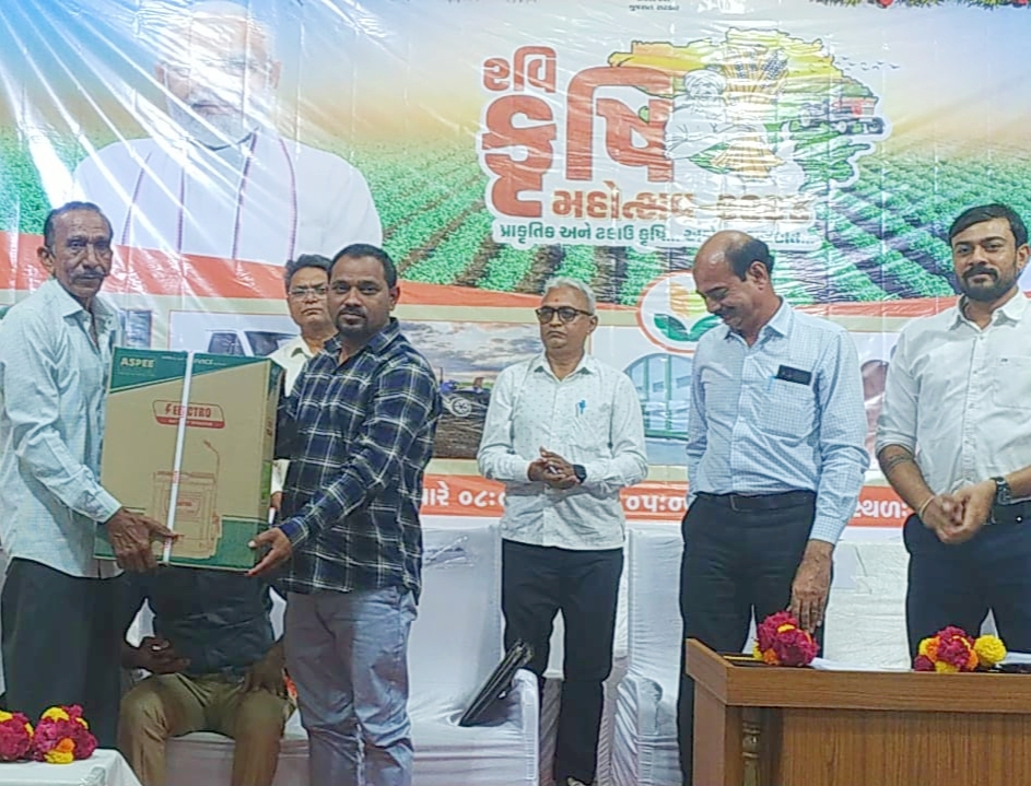 ઉપસ્થિતના હસ્તે દીપ પ્રાગટય તથા રાજ્ય કક્ષાએથી મુખ્યમંત્રીશ્રીના કાર્યક્રમનું લાઈવ પ્રસારણ નિહાળ્યું હતું.આ પ્રસંગે ઉપસ્થિતિ તો એ જણાવ્યું હતું કે ભારતના યશસ્વી વડાપ્રધાન નરેન્દ્રભાઈ મોદી એ બીડું ઝડપ્યું છે,કૃષિ અને ખેડૂતોને વિકાસ તરફ લઈ જવા છે તે માટે દ્રઢ સંકલ્પ કર્યો છે. કૃષિ મહોત્સવ દર વર્ષે નવા આયામો લઈને આવે છે કૃષિના ઋષિ, જગતનો તાત નો વિકાસ કરવા 2005 થી કૃષિ મહોત્સવનો પ્રારંભ થયો છે. કૃષિ ક્ષેત્રે જે ટેકનોલોજીનો વિકાસ થયો છે તો આ ખેતી ટેકનોલોજી સભર બનાવી ઉત્પાદન વધારી ખેતીમાં જે પ્રશ્નો ઉદ્ભભવે છે,તેનું વૈજ્ઞાનિક ઢબે નિરાકરણ આવે તે કૃષિ મહોત્સવનો હેતુ છે.જંબુસર ની જમીન ક્ષારયુક્ત જમીન છે આપણી જમીનમાં ઓછા પાણીથી ખેતી કરીશું ,આ જમીનમાં પાણીનો ઉપયોગ વધુ કરીશું તો આ જમીનનો ક્ષાર ઉપર આવશે તો આ જમીન આવનારી પેઢીને વારસામાં આપી શકીશું નહીં, ક્ષાર યુક્ત જમીન નિવારણ કરવાના ઉપાયો છે. આપણા વિસ્તાર અને જમીન આધારિત ખેતી કરવી જોઈએ અને નવી ટેકનોલોજીનો ઉપયોગ કરવો તે માટે સંશોધન કેન્દ્રની મુલાકાત લેવા જણાવ્યું હતું.ભરૂચ જિલ્લાના મુખ્ય બે પાક કપાસ અને તુવેર તેની વિવિધ જાતની સવિસ્તાર માહિતી આપી હતી. ધરતીપુત્રોએ પ્રાકૃતિક ખેતી તરફ વળવા જણાવ્યું ખેડૂતો ઝીરો બજેટથી ઉત્પાદન કરી શકે તે માટે પ્રાકૃતિક ખેતી અપનાવતા થાય તે માટે માર્ગદર્શન,તાલીમ,શિબીરો યોજાઇ રહી છે. ખેડૂત વધુ ને વધુ ઉત્પાદન કરી શકે તે માટે માનનીય વડાપ્રધાન નરેન્દ્ર મોદીનું સપનું ભારતને વિકસિત બનાવવાનું તે નેમ પૂર્ણ થાય તે દિશામાં પ્રયત્ન કરવા જણાવ્યું. આ સહિત સરકારની ખેડૂતલક્ષી વિવિધ યોજનાઓ કૃષિ મહોત્સવ થકી છેવાડાના માનવી સુધી પહોંચે અને ધરતીપુત્રોને વિકાસ કરવાનો ઉદ્દેશ છે. વર્ષ 2024 25 દરમિયાન ખેતીવાડી શાખા જંબુસર દ્વારા 1555 ખેડૂત લાભાર્થીઓને રૂપિયા બે કરોડ 53 લાખ 22,611 ની સહાય આપવામાં આવી જે અંતર્ગત વિવિધ યોજના હેઠળ દવા છાંટવાના પંપ,સાધન ખરીદી પૂર્વ મંજૂરી હુકમ,સર્ટી ,14 જેટલા લાભાર્થી ખેડૂતોને ઉપસ્થિતોના હસ્તે વિતરણ કરવામાં આવ્યું. ત્યારબાદ પ્રદર્શન સ્ટોલને ખુલ્લો મૂકી નિર્દેશન કર્યું હતું. બપોરે કોટેશ્વર ખાતે આવેલ પ્રાકૃતિક ખેતી ના મોડલ ફાર્મ ની ધરતીપુતત્રોને મુલાકાત કરાવવામાં આવી હતી. આ પ્રસંગે વિસ્તરણ અધિકારી હર્ષિતભાઈ દયાલ, નિલમ ચૌધરી, અગ્રણી રાજુભાઈ દરબાર સહિત મોટી સંખ્યામાં ધરતીપુત્રો હાજર રહ્યા હતા.