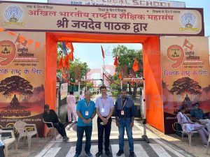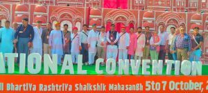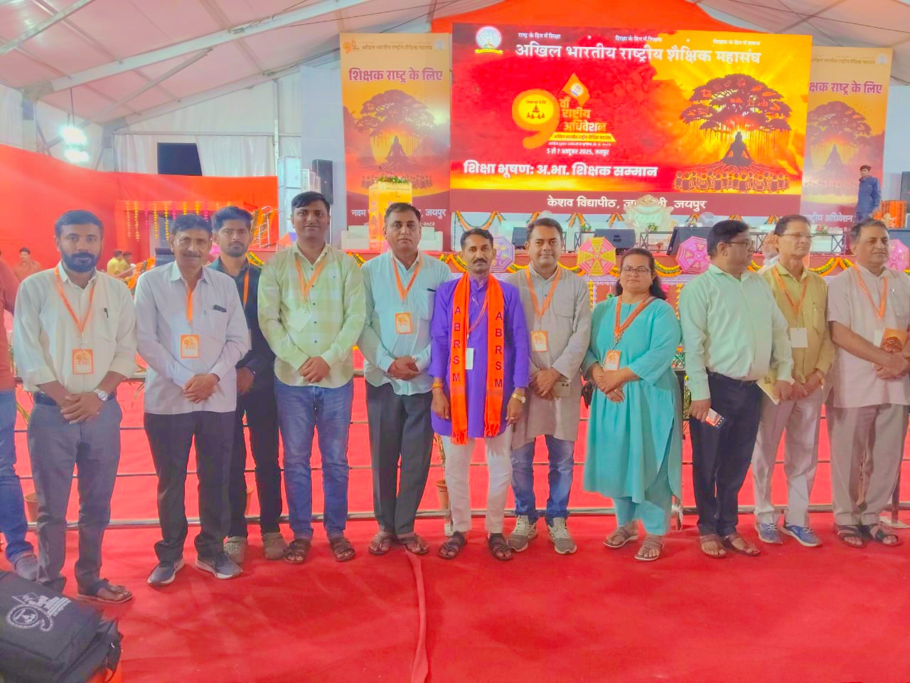 માંડવી,તા-૦૮ ઓક્ટોબર : જુની પેન્શન યોજના સહીત શિક્ષકોના પ્રાણ પ્રશ્નો અને નવી રાષ્ટ્રીય શિક્ષણ નિતિ, રાષ્ટ્રીય સુરક્ષા સીમાઓથી સમાજ સુધી અંગે ઠરાવ પસાર કરવામાં આવ્યા.અખિલ ભારતીય રાષ્ટ્રીય શૈક્ષિક મહાસંઘનું નવમું ત્રિવાર્ષિક રાષ્ટ્રીય અધિવેશન રવિવારથી ત્રણ દિવસ માટે જયપુર ખાતે યોજાયો, જેમાં સમગ્ર ભારતમાંથી 3500 જેટલા પ્રતિનિધિઓ ઉપસ્થિત રહ્યા ગુજરાતમાંથી અખિલ ભારતીય ઉપાધ્યક્ષ ભીખાભાઈ પટેલ તથા પ્રદેશ અધ્યક્ષ મિતેષભાઈ ભટ્ટ સહિત 300થી વધુ પદાધિકારીઓ ઉપસ્થિત રહ્યા.અખિલ ભારતીય રાષ્ટ્રીય શૈક્ષિક મહાસંઘ (ABRSM) દ્વારા નવમા ત્રિવાર્ષિક રાષ્ટ્રીય અધિવેશનનું આયોજન 5થી 7 ઓક્ટોબર દરમિયાન જયપુરમાં કરાયું જેમાં દેશના 29 રાજ્યમાંથી 3500 પ્રતિનિધિ શિક્ષકો હાજર રહ્યા અને શિક્ષણ નીતિ અને ગુણવત્તાવાન શિક્ષણ માટેના સંકલ્પ લીધા. આ અધિવેશનનું ઉદ્દઘાટન રાજસ્થાનના મુખ્યમંત્રી ભજનલાલ શર્મા 5 ઓક્ટોબરે સવારે 11 વાગ્યે કર્યુ હતુ જેમા રાષ્ટ્રીય સ્વયંસેવક સંઘ અખિલ ભારતીય બૌદ્ધિક શિક્ષણ પ્રમુખ સુનીલભાઈ મહેતા, કાર્યકારિણી સદસ્ય સુરેશભાઈ સોની, ઉપ મુખ્ય મંત્રી દિયા કુમારી, ડૉ. પ્રેમચંદ બેરવા, શિક્ષણ મંત્રી મદન દિલાવર, રાજ્યસભા સાંસદ ડૉ.સુધાંશુ ત્રિવેદી અને NCERT ડાયરેક્ટર દિનેશ પી સકલાણી, અખિલ ભારતીય અધ્યક્ષ નારણલાલ ગુપ્તા મહામંત્રી ડોક્ટર ગીતા ભટ્ટ સંગઠન મંત્રી મહેન્દ્ર કપૂર અને સહ સંગઠન મંત્રી જી લક્ષ્મણ, નવી શિક્ષણ નીતિનો ઉચ્ચ શિક્ષણમાં અમલ કરનાર UGC ના પૂર્વ ચેર અને આઈ. આઈ. ટી.ના પ્રોફેસર એમ. જગદેશ કુમાર સહિતનાઓએ વિવિધ સત્રમાં ઉપસ્થિત રહી પ્રેરક માર્ગદર્શન પુરુ પાડ્યું હતુ.આ અધિવેશનમાં વિવિધ વર્કશોપ, વિમર્શ, પ્રવચન તથા પ્રદર્શનીઓ યોજાઈ. દેશના ત્રણ શ્રેષ્ઠ શિક્ષકોનું ‘શિક્ષાભૂષણ’ પુરસ્કાર તથા રાષ્ટ્રીય શિક્ષક સન્માન સમારોહ ખાસ આકર્ષણ રહ્યા. રાજ્ય તેમજ રાષ્ટ્રીય રાજકીય-સામાજિક નેતા, શિક્ષણ નિષ્ણાતો અને વિષય વ્યાખ્યાતાઓ વિવિધ માર્ગદર્શક વિષય પર પોતાનું વક્તવ્ય આપ્યુ હતુ. વિશેષ મુદાઓ અગાઉ દેશમાં શિક્ષકોની ભૂમિકા અંગે પાંચ વર્ષનું ચિંતન, માળખું તથા રાષ્ટ્રીય શિક્ષણ નીતિ (NEP)ની અમલવારી, શિક્ષક સમસ્યા, શિક્ષકોની સુરક્ષા, સામાજિક અને સામૂહિક સુધારણા પ્રશ્નો વિશદરૂપે ચર્ચાયા હતા.અખિલ ભારતીય અધિવેશનમાં કચ્છ જિલ્લા વતી અખિલ ભારતીય રાષ્ટ્રીય શૈક્ષિક મહાસંઘ ગુજરાત ઉપાધ્યક્ષ મુળજીભાઈ ગઢવી, સરકારી માધ્યમિક શૈક્ષિક મહાસંઘ ગુજરાતના અધ્યક્ષ નયનભાઈ વાંઝા, ઉપાધ્યક્ષ પુનશીભાઈ ગઢવી, સૌરાષ્ટ્ર સંભાગ સંગઠન મંત્રી રમેશ ભાઈ ગાગલ તથા સહસંગઠન મંત્રી રાખીબેન રાઠોડ, કચ્છ જિલ્લા મહામંત્રી ડૉ. શૈલેન્દ્રસિંહ જાડેજા, પ્રાથમિક શૈક્ષિક મહાસંઘ કચ્છ જિલ્લા કાર્યકારી અધ્યક્ષ ભરતભાઇ ધરજીયા, સંગઠન