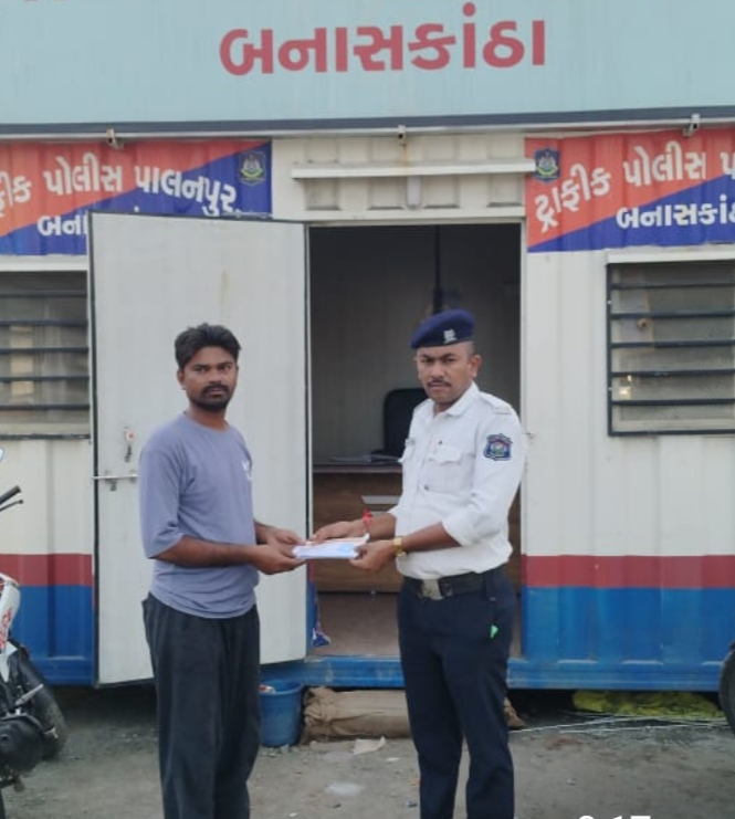 પાલનપુર ખાતે એરોમા સર્કલ ઉપર ફરજ બજાવતા ટી.આર.બી. જવાનની માનવતા મહેકી ઉઠી