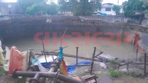 કાલોલ દિવાન વાડીમાં પાણીની ટાંકી પાસે બનાવેલ સંપ ધરાશાયી થયો..
