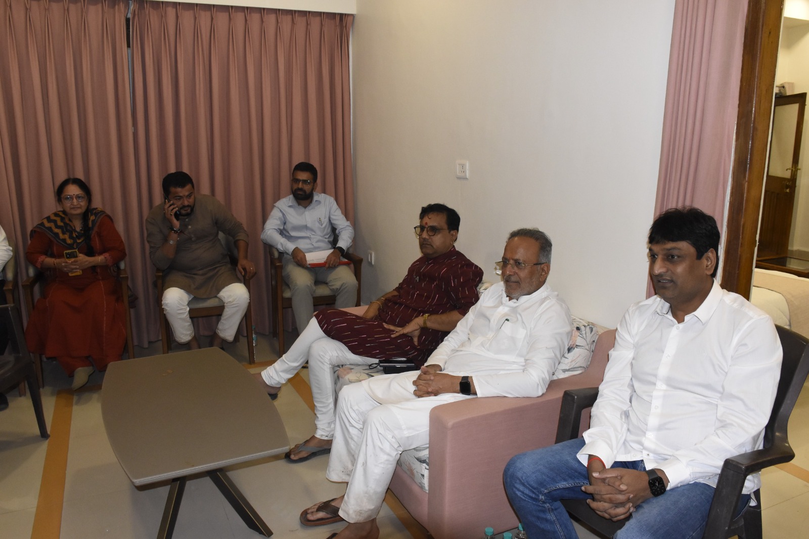 સૌરાષ્ટ્રમાં કમોસમી વરસાદના પગલે ખેતી પાકો અસરગ્રસ્ત થતા રાજ્ય સરકારના મંત્રીશ્રીઓ જિલ્લાઓની મુલાકાતે છે.જુનાગઢ જિલ્લાના મેંદરડા તાલુકામાં મંત્રી અર્જુનભાઈ મોઢવાડિયા અને મંત્રી પ્રદ્યુમન વાજાએ મુલાકાત લીધા પછી જુનાગઢ સર્કિટ હાઉસ ખાતે અધિકારીઓ- પદાધિકારીઓ સાથે બેઠક કરી હતી. આ બેઠકમાં ખેતી પાકોની નુકસાની અંગે સર્વે અંગે જરૂરી માર્ગદર્શન આપ્યું હતું.બેઠકમાં સાંસદ રાજેશભાઈ ચુડાસમા, ધારાસભ્ય દેવાભાઈ માલમ ,ધારાસભ્ય ભગવાનજીભાઈ કરગઠિયા, જિલ્લા ભાજપ પ્રમુખ ચંદુભાઈ મકવાણા, પલ્લવીબેન ઠાકર, કલેક્ટર અનિલ કુમાર રાણાવસિયા, મ્યુનિસિપલ કમિશનર તેજસ પરમાર, જિલ્લા વિકાસ અધિકારી એચ પી પટેલ ,ખેતીવાડી વિભાગના અધિકારીઓ ઉપસ્થિત રહ્યા હતા