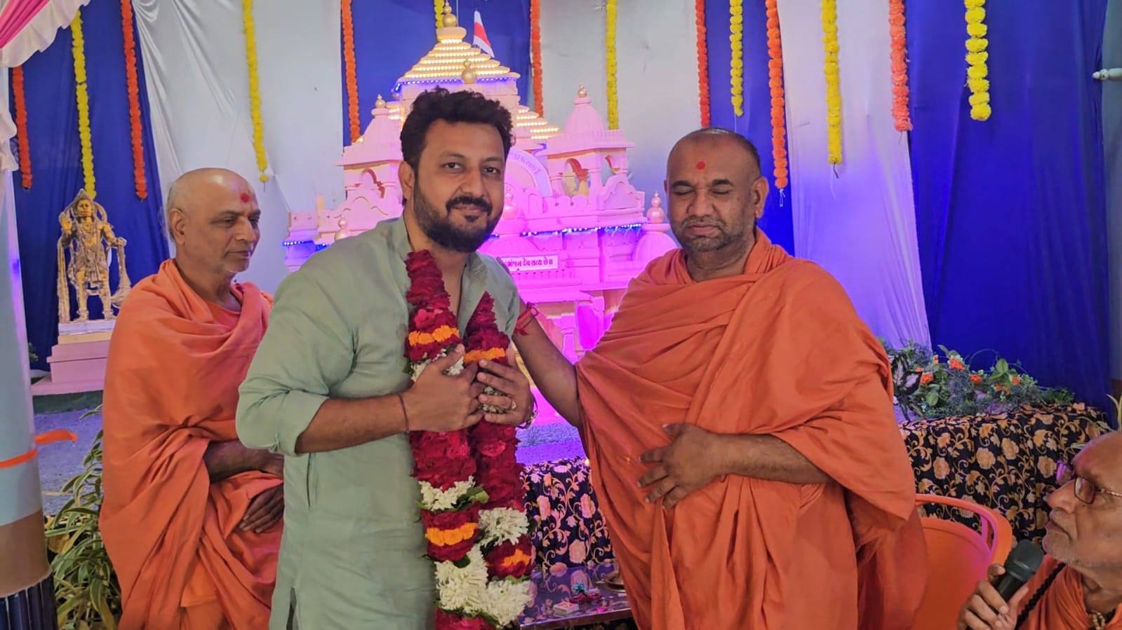 રાજુલા શહેરમાં આવેલ જુના સ્વામિનારાયણ મંદિર નીચલી બજાર ખાતે જ્યાં દર વર્ષ વિવિધ કૃતિઓ બનાવવામાં આવતી હોય છે ત્યારે આ વર્ષે સાળંગપુર મંદિરની આબેહૂબ કૃતિ બનાવવામાં આવી અને જે કૃતિ આજે રાજુલા શહેરમાં ભારતીય જનતા પક્ષ ના અગ્રણીઓના હસ્તે ખુલ્લી મુકવામાં આવી ત્યારે આ પ્રસંગે વિવિધ સાધુ સંતો વેપારીઓ અગ્રણીઓ કાર્યકર્તાઓ સહિત અનેક લોકો હાજર રહ્યા જેમાં ખાસ કરીને ગઢડા સ્વામિનારાયણ મંદિરના ચેરમેન હરીજીવન દાસજી સ્વામી. તેમજ ગઢડા સ્વામિનારાયણ મંદિર વિશ્વજીવનદાસજી સ્વામી તેમજ ઢસા થી શાસ્ત્રી સ્વામી તેમજ ગઢડા થી વિપુલ ભગત સહિત ના સંતો એ હાજરી આપેલી ત્યારે રાજુલાના હરીનંદન સ્વામી તેમજ શ્રી સ્વામિનારાયણ મંદિર જુના કોઠારી સ્વામી શ્રી નારાયણ દાસજીની ની પ્રેરણા મુજબ રાજુલા સહજાનંદ ગ્રુપ દ્વારા શ્રી સાળંગપુર ધામનું પ્રદર્શન આજે ખુલ્લુ મુકવામાં આવ્યું ત્યારે આવેલા તમામ સાધુ સંતોએ આ સહજાનંદ ગ્રુપના પ્રમુખ સંદીપભાઈ ટાંક તથા ટ્રસ્ટી વલ્લભભાઈ પરમાર ધર્મેન્દ્રભાઈ પરમાર પ્રમોદભાઈ સોની સહિતના તમામ ગ્રુપના સભ્યોને અભિનંદન પાઠવેલા સાથે સાથે આજના આ દિવસે સ્વામિનારાયણ મંદિર રાજુલા ખાતે સંદીપભાઈ ટાંક ને ટ્રસ્ટી તરીકે જાહેર કરવામાં આવેલા તેમજ બે નાના નાના બાળકો પાર્થ યોગેશભાઈ મકવાણા તેમજ હેત યોગેશભાઈ મકવાણા આ બંને બાળકોને આ આવેલા તમામ સાધુ સંતોએ પણ શુભેચ્છાઓ પાઠવી અને સાથે સાથે આજના આ દિવસે જયેશભાઈ વલ્લભભાઈ પરમારનું જન્મદિવસ હોય ત્યારે સાધુ સંતોએ જયેશભાઈ ને પણ આશીર્વાદ આપેલા ત્યારે આ મંદિર ખાતે બનાવવામાં આવેલ સાળંગપુર ધામની કૃતિ જન્માષ્ટમી સુધી રાજુલા શહેર તેમજ આજુબાજુની ધર્મપ્રિય જનતા માટે ખુલ્લી મુકવામાં આવેલ છે જે દરરોજ સાંજના 5 થી 8 સુધી મંદિરના સમયે દર્શન કરી શકશે તો રાજુલા શહેરના આ સહજાનંદ ગ્રુપ દ્વારા ધર્મ પ્રિય જનતાને જાહેર નિમંત્રણ પાઠવવામાં આવે છે
