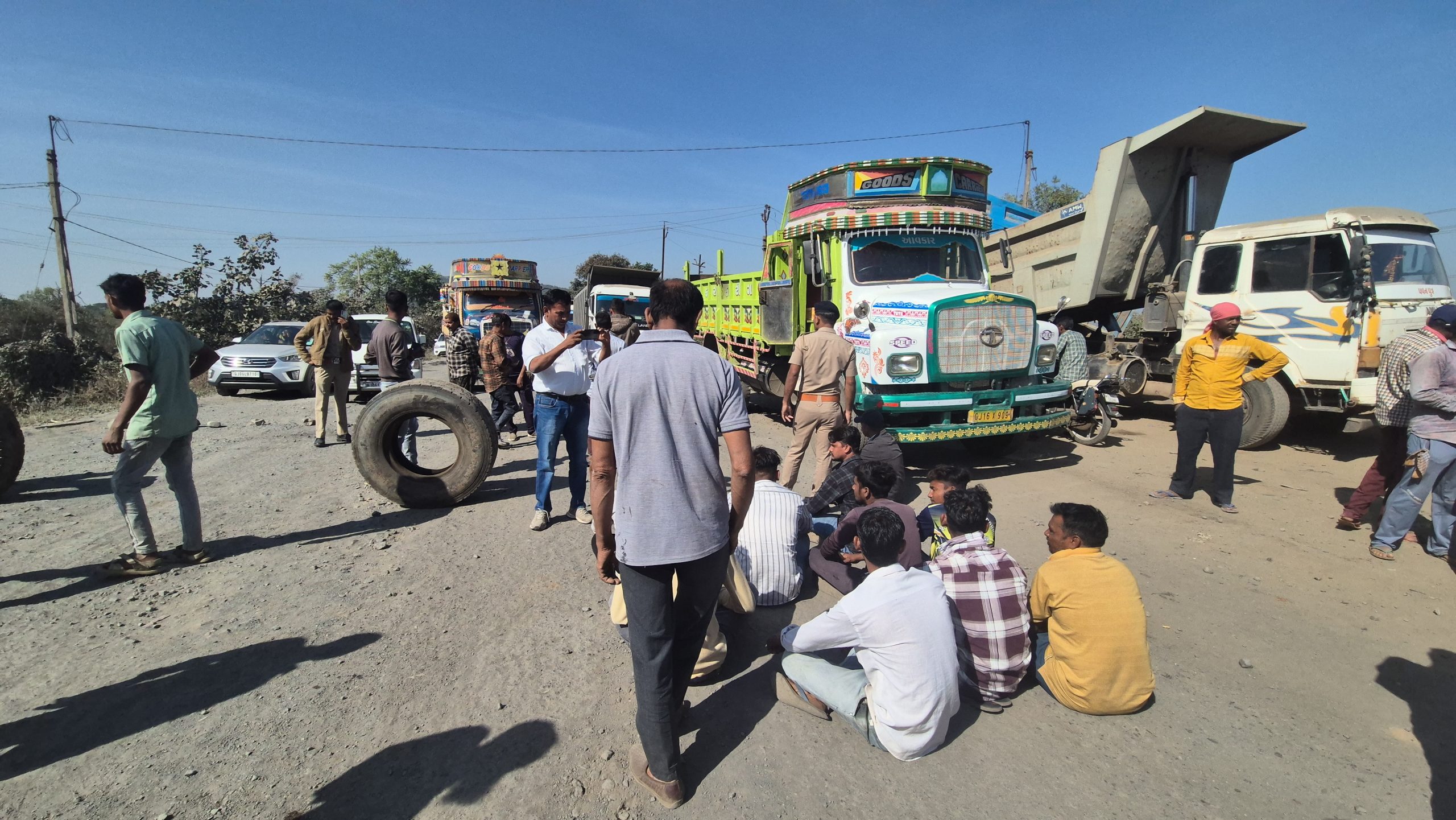 ચાલુ સાલે ચોમાસા દરમિયાન રાજ્યમાં થયેલ વ્યાપક મેઘવર્ષાને લઇને ઠેરઠેર શહેરી ઉપરાંત ગ્રામિણ રસ્તાઓનું મોટાપાયે ધોવાણ થયું છે. ત્યારબાદ વરસાદે વિરામ લેતા માર્ગો પર દોડતા વાહનોના કારણે ધુળ ઉડવાની સમસ્યા સર્જાવા પામી છે. ભરૂચ જીલ્લાના ઝઘડિયા તાલુકાના રાજપારડી ગામથી નેત્રંગને જોડતો ૨૩ કી.મી.નો માર્ગ પણ અસંખ્ય ખાડાઓ પડતા બિસ્મારતાની હદ વટાવી ગયો છે.ઉપરાંત માર્ગ પણ ધુળીયો બનતા ઉડતી ધુળના કારણે લોકોના સ્વાસ્થયને નુકસાન થવાની પુરી સંભાવના રહેલીછે.રાજપારડી નજીક નેત્રંગ તરફના માર્ગ પર ક્વોરી ઉદ્યોગ આવેલ હોઇ આ માર્ગ પરથી ભારદારી વાહનો મોટી સંખ્યામાં પસાર થાયછે જેના કારણે માર્ગ બિસ્માર બનતો હોવાનું સ્થાનિકો જણાવી વળી હિંગોરીયા ગામે માર્ગ નજીક શાળા આવેલી હોઇ શાળાના છાત્રોને પણ ઉડતી ધૂળથી એલર્જી સહિત સ્વાસ્થ બગડવાની સંભાવનાઓ રહેલીછે.ત્યારે આજરોજ ખરાબ રસ્તાથી કંટાળેલા હિંગોરીયા ગામના લોકો વિરોધ કરવા રસ્તા પર ઉતરી આવ્યા હતા.અને માર્ગની વચ્ચે ટાયરો અને પથ્થરો ગોઠવી માર્ગ પર જ ધરણા પર બેસી ગ્રામજનોએ આવતા જતા વાહનોને અટકાવીને રસ્તો રોકી રાખતા વાહનોની ૩ કી.મી. લાંબી કતારો જોવા મળી હતી. ખરાબ રસ્તાથી ત્રસ્ત ગ્રામજનોએ વાહનો રોકી રાખતા ચક્કા જામ સર્જાયો હતો. બિસ્માર બનેલા રાજપારડી નેત્રંગને જોડતા માર્ગને દુરસ્ત કરવા તંત્રને વારંવાર રજૂઆતો અને માંગણીઓ કરવા છતાં સમસ્યાનો હલ નહી આવતા ગ્રામજનો વિફર્યા હતા. આજરોજ મંગળવારે સવારના સમય દરમિયાન રાજપારડી નેત્રંગ માર્ગ પર આવેલ હિંગોરીયા ગામના સ્થાનિકો વિરોધ પ્રદર્શિત કરવા રોડ પર ઉતરી આવ્યા હતા અને નેત્રંગથી રાજપારડી અને રાજપારડીથી નેત્રંગ તરફ જતા વાહનો હિંગોરીયા ગામ પાસે આંદોલનકારી ગ્રામજનોએ અટકાવી દીધા હતા.અગ્રણીઓ સહિતના ગ્રામજનોએ ખરાબ અને ધુળિયા માર્ગને લઇને વાહનો અટકાવી દેતા બન્ને તરફ ૩ કિલોમીટર જેટલી લાંબી વાહનોની લાઇનો જોવા મળી હતી. લગભગ બે કલાક સુધી લોકોએ વાહનો અટકાવી દેતા ઝઘડીયા મામલતદાર,માર્ગ અને મકાન વિભાગ ભરૂચ, રાજપારડી પોલીસે મહામહેનતે ગ્રામજનોને સમજાવતા જણાવ્યું હતું નજીકના દિવસોમાં તાકીદે આ માર્ગનું સમારકામ હાથ ધરાશે તેમ બાંહેધરી આપતા હાલ પુરતો મામલો થાળે પડ્યો હતો. ત્યારબાદ લોકોએ વાહનો જવા દેતા વાહન વ્યવહાર પૂર્વવત થયો હતો.