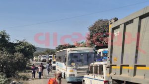 બિસ્માર બનેલા માર્ગના વિરોધમાં ઝગડીયાના હિંગોરીયાના ગ્રામજનોનું રસ્તા રોકો આંદોલન ૩ કિ.મી.સુધી વાહનોની કતારો લાગી