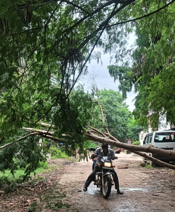 કાલોલ વેરાઈ માતાના મંદિર નજીક જેતપુર જવાના રસ્તે વીજ લાઈન ઉપર ઝાડ પડતા મોટા અકસ્માત નો ભય.તંત્રને કરાઈ રજૂઆત