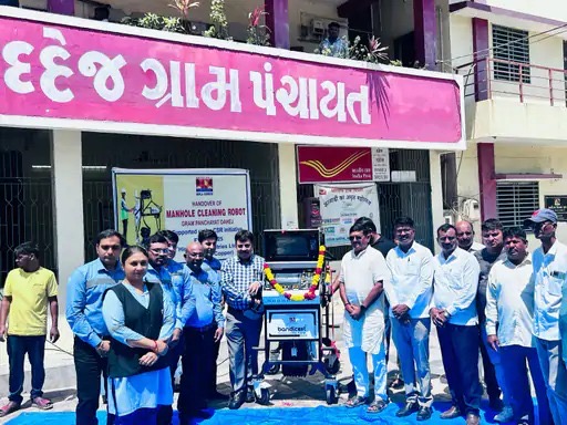 દહેજમાં મેન્યુઅલ સ્કેવેન્જિંગને અટકાવવા પહેલ:બિરલા કોપરે ગ્રામ પંચાયતને 35 લાખનું રોબોટિક ક્લીનર આપ્યું, હવે મુખ્ય ગટરની સફાઈ સુરક્ષિત રીતે થશે