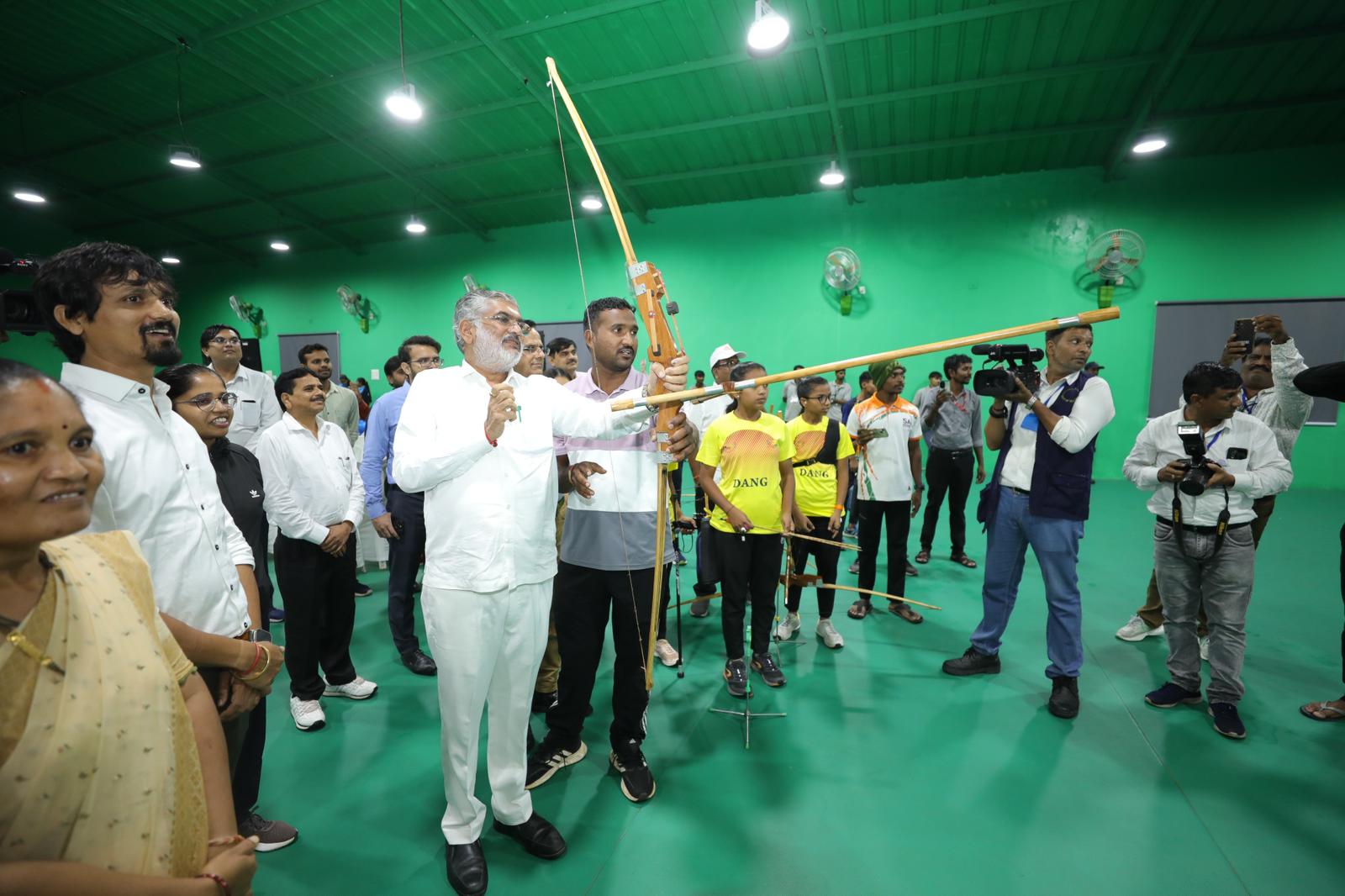 મંત્રીશ્રી સહિતના મહાનુભાવોએ ખેલાડીઓને પ્રોત્સાહિત કરતા તીરંદાજી પણ કરી હતી.