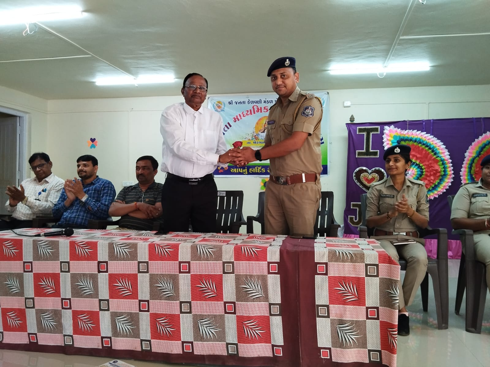 ખેરગામ જનતા માધ્યમિક શાળામાં પોલીસ દ્વારા ટ્રાફિકના કાયદા અને નિયમોનું માર્ગદર્શન આપવામાં આવ્યું