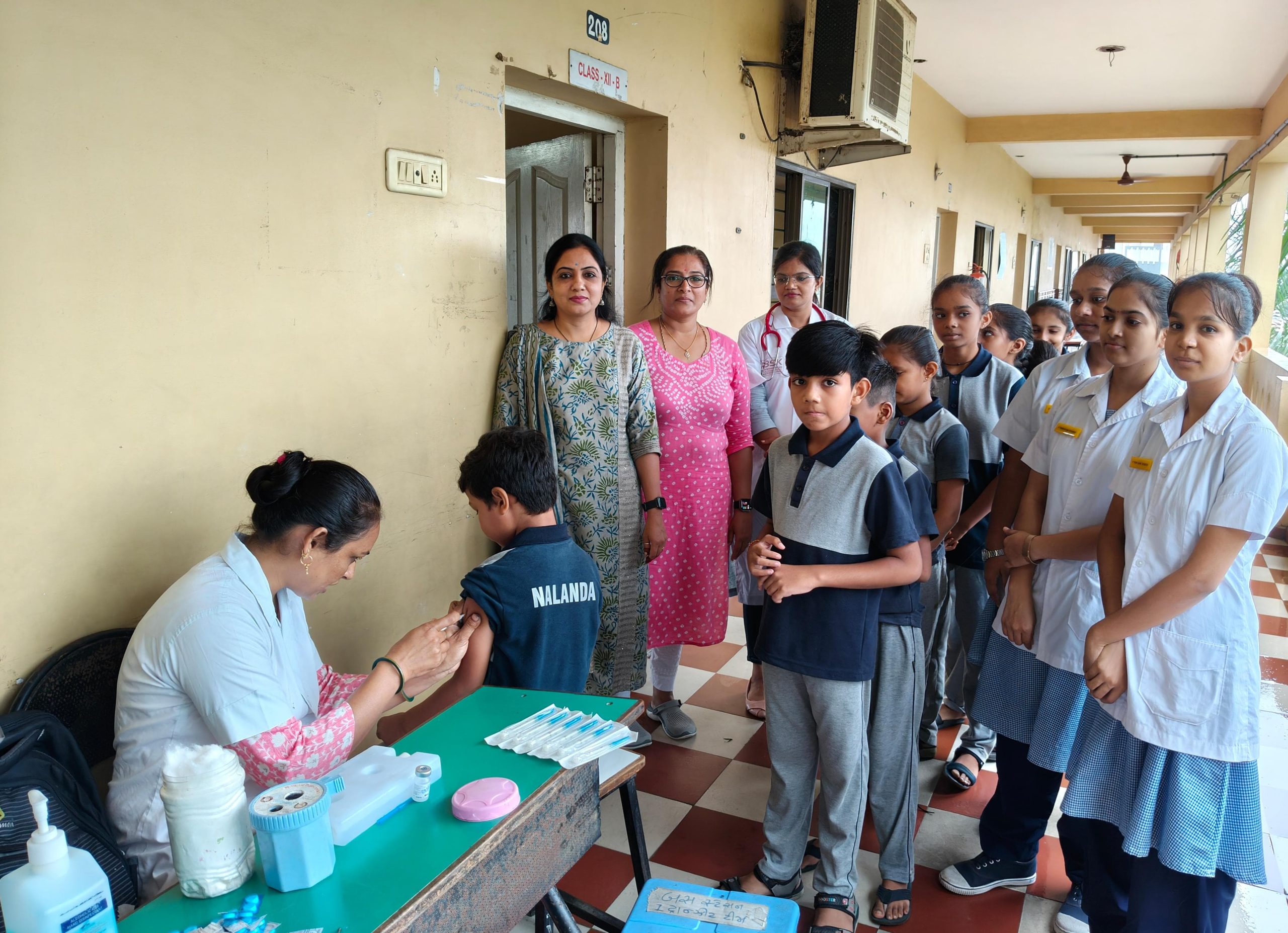 આ કાર્યક્રમ અંતર્ગત ધોરણ ૫ અને ધોરણ ૧૦માં અભ્યાસ કરતા શાળાના કુલ ૧૪૧ વિદ્યાર્થીઓને (TD) ધનુર અને ડીપ્થેરિયા રોગ સામે રક્ષણ આપતી રસીથી બાળકોને રક્ષિત કરવામાં આવ્યા હતા. આ કામગીરી ગોધરા અર્બન ખાડી ફળિયાના આરોગ્ય વિભાગની ટીમ અને નાલંદા સ્કૂલના પ્રિન્સિપાલશ્રી અને તમામ શિક્ષકો અને વાલીઓના સકારાત્મક અભિગમ અને સહયોગથી સફળતાપૂર્વક પૂર્ણ કરવામાં આવી હતી.